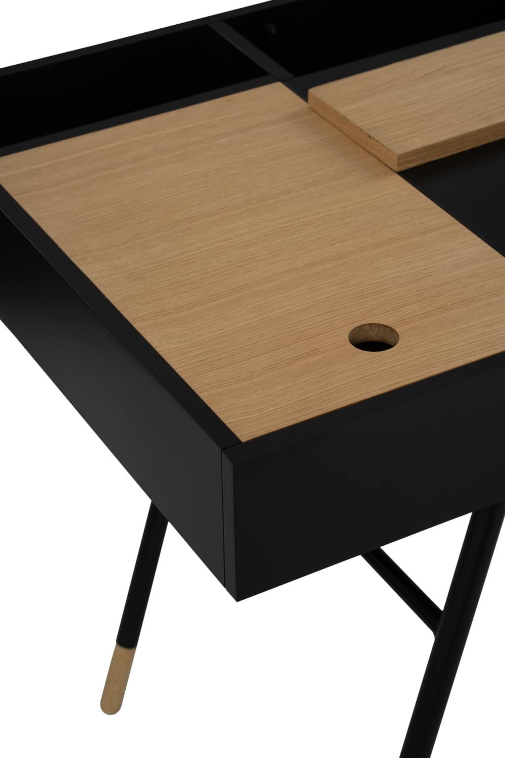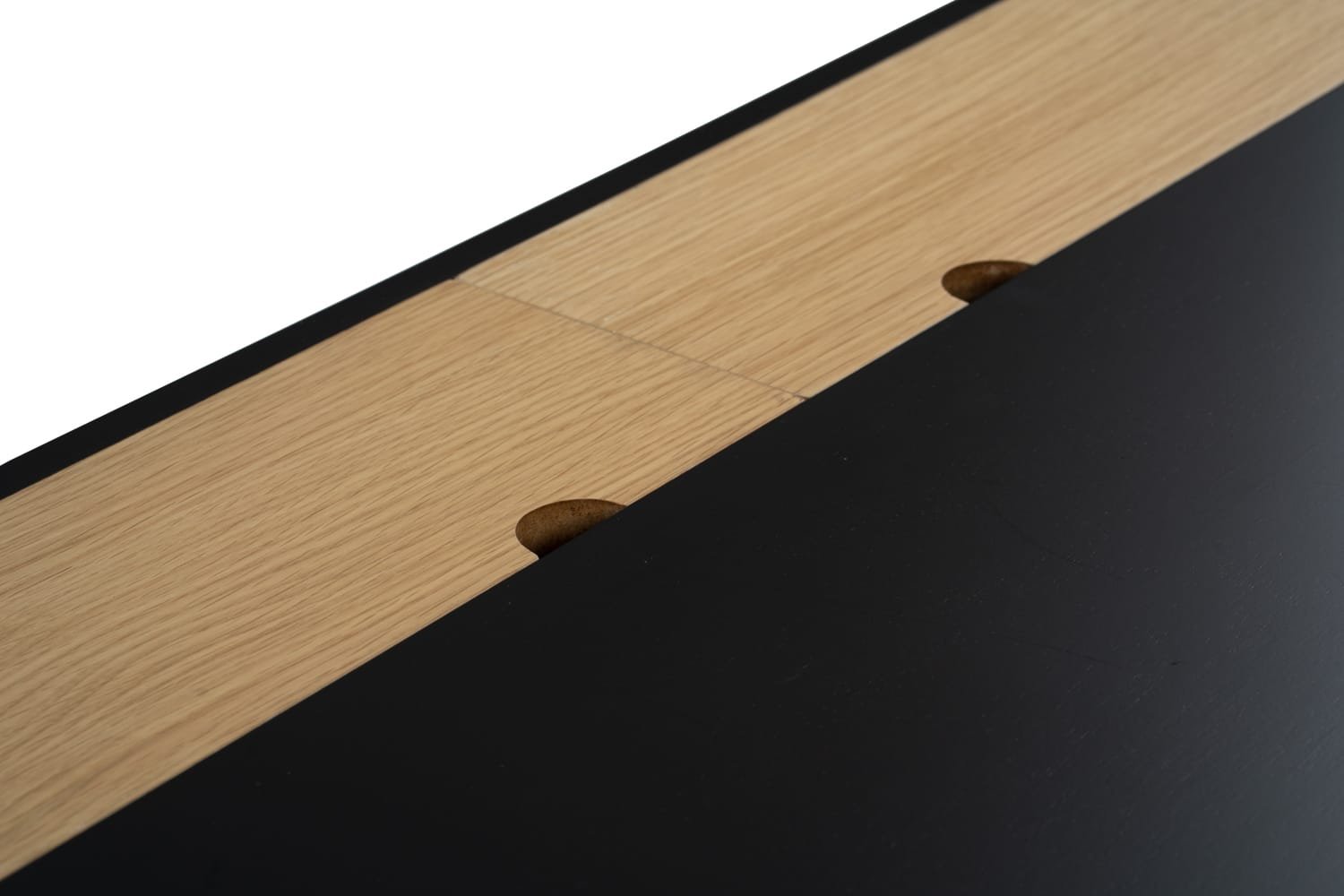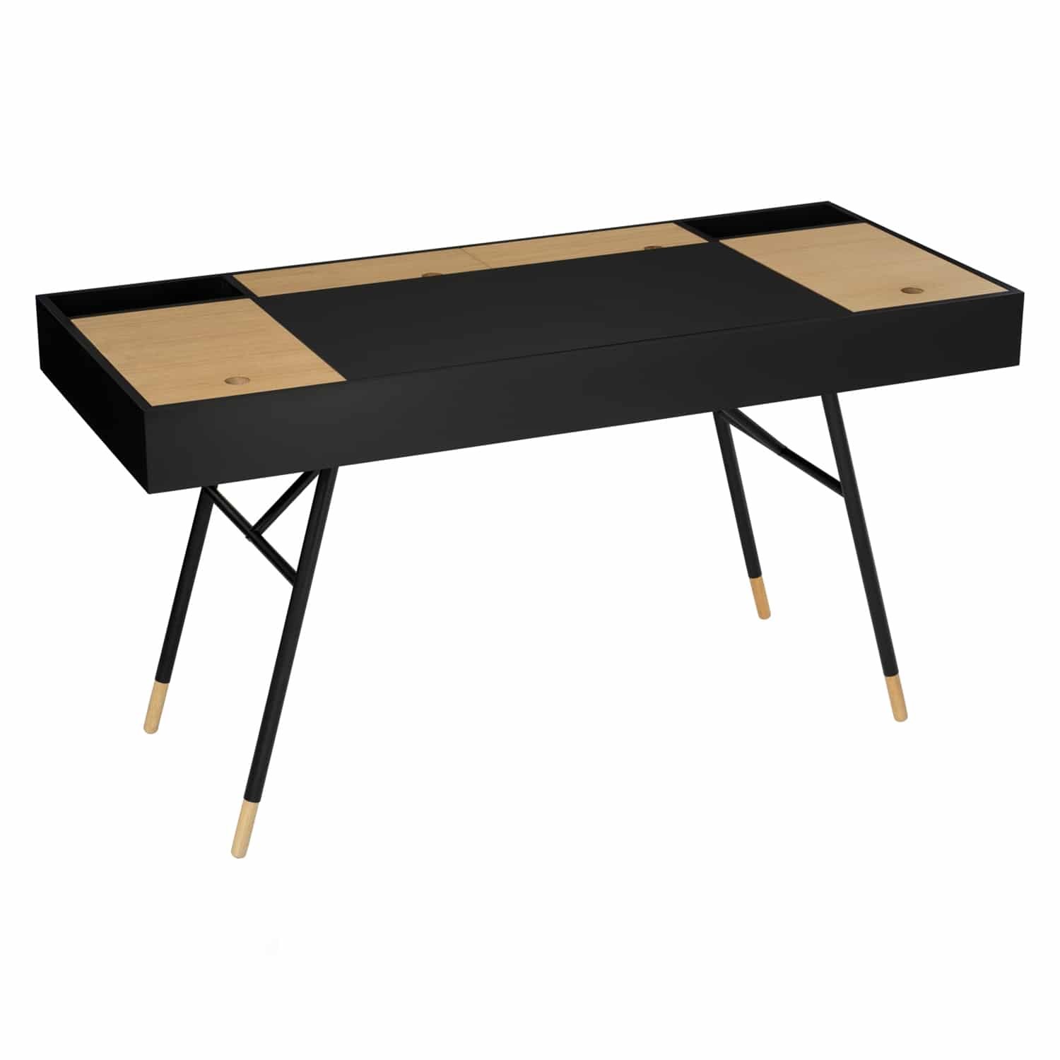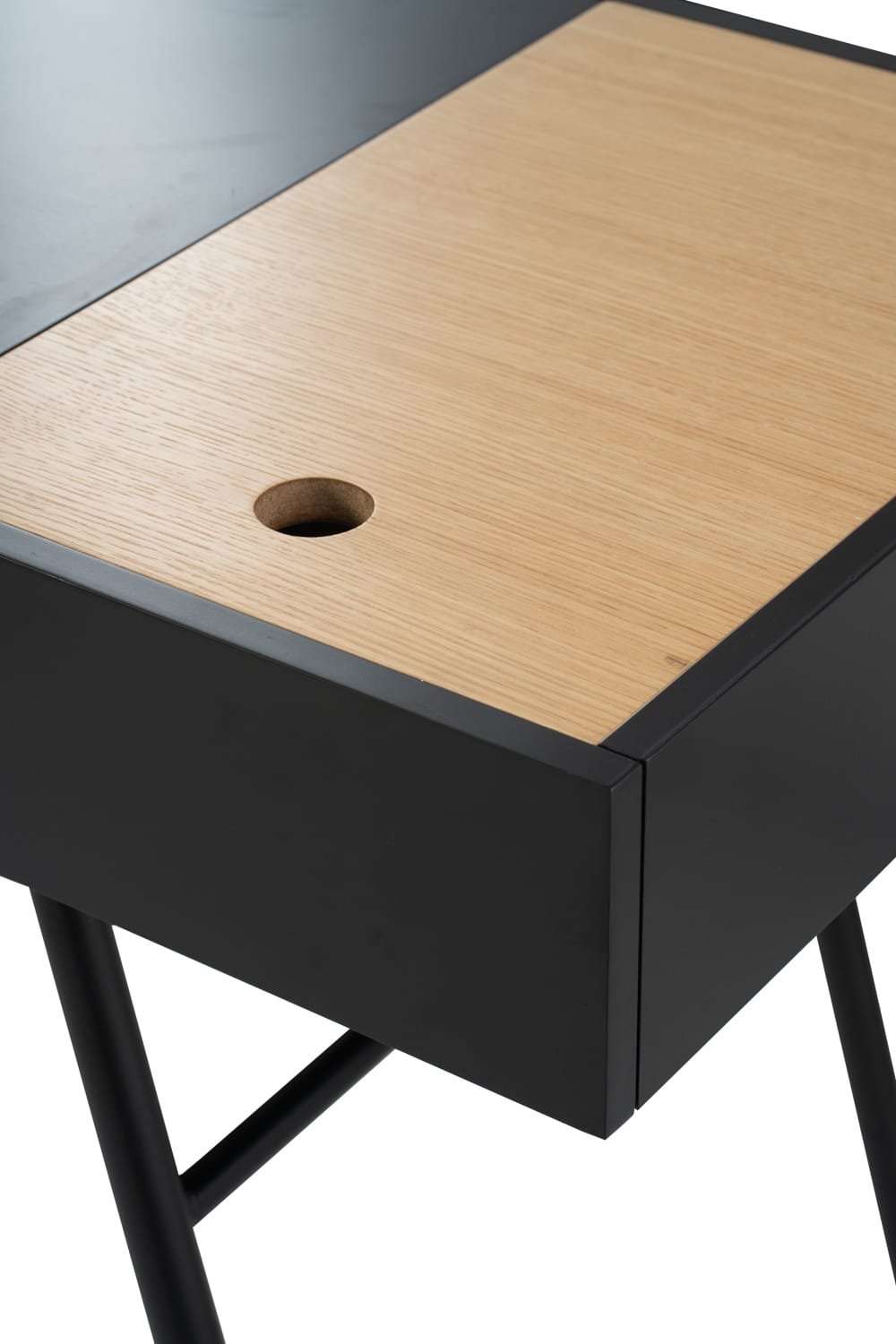 Morse working desk in Black Ash Veneer and Oak Veneer with Matt Black Epoxy leg