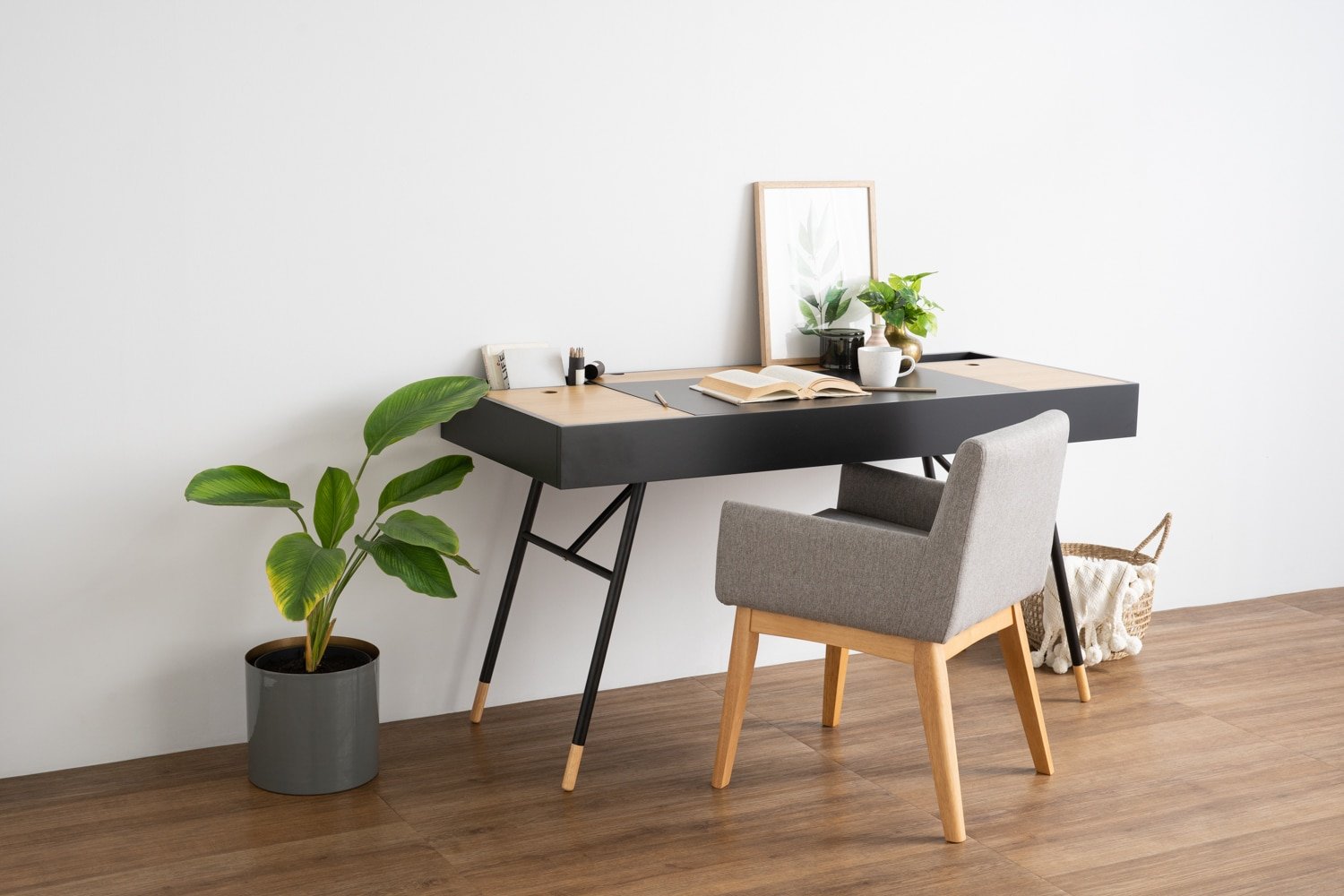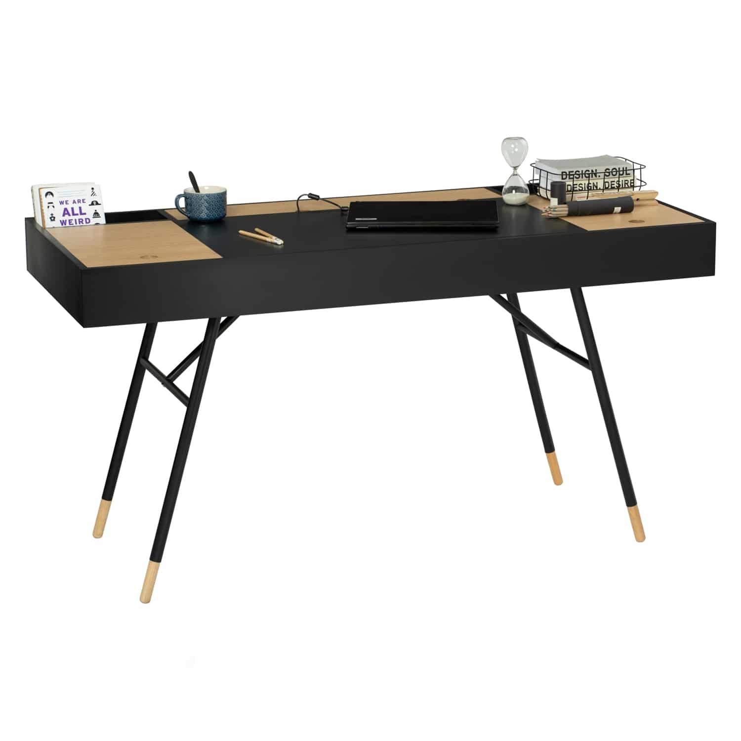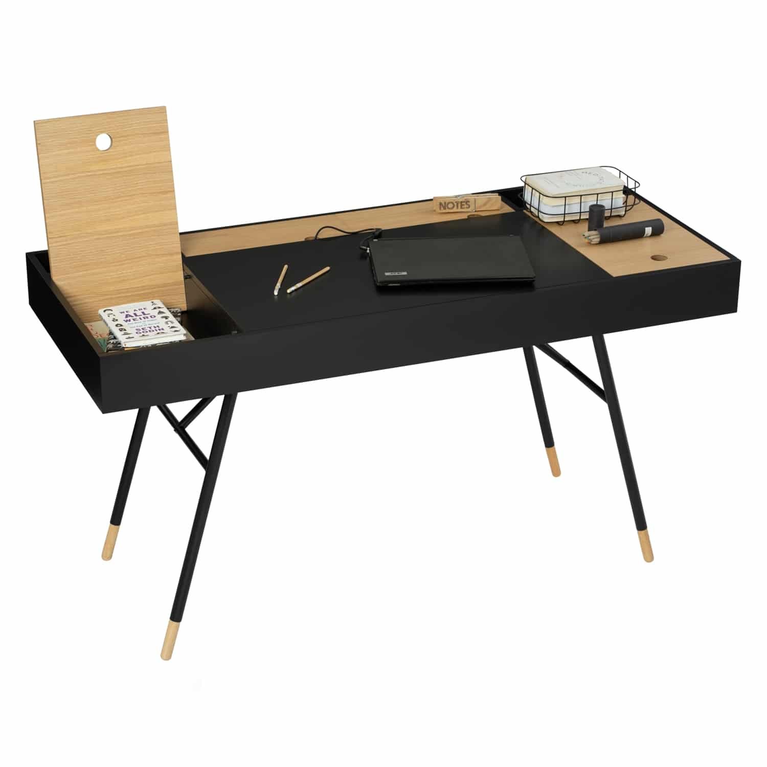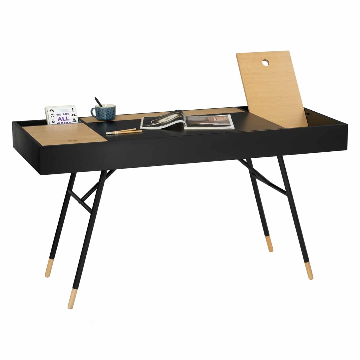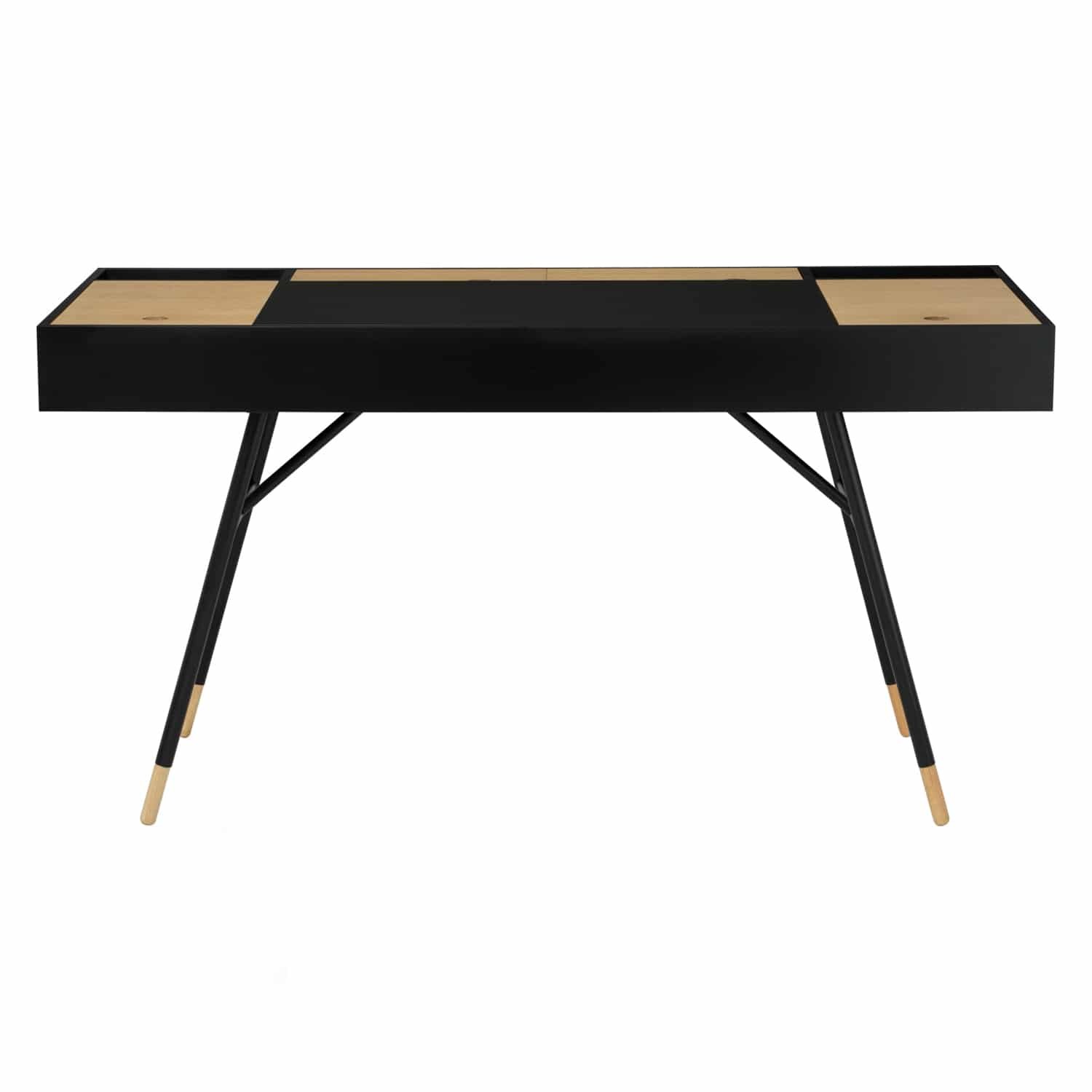 Morse working desk in Black Ash Veneer and Oak Veneer with Matt Black Epoxy leg