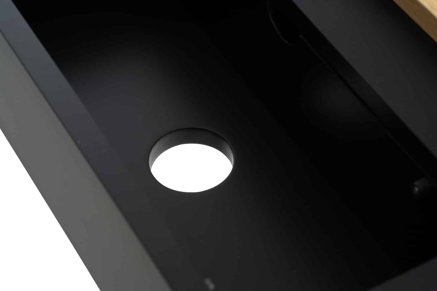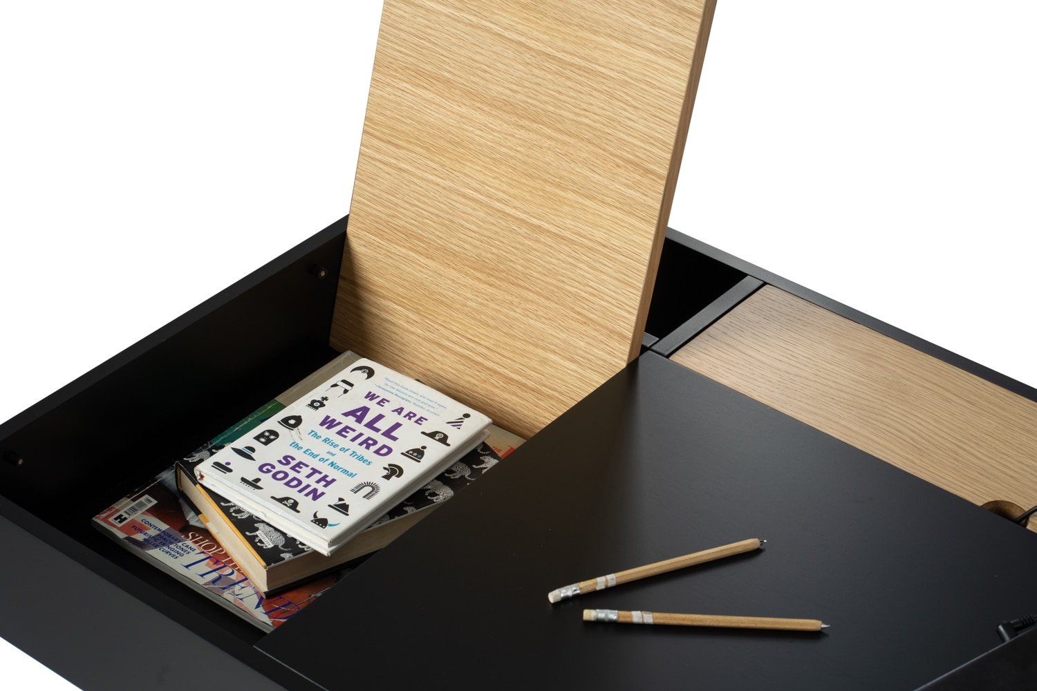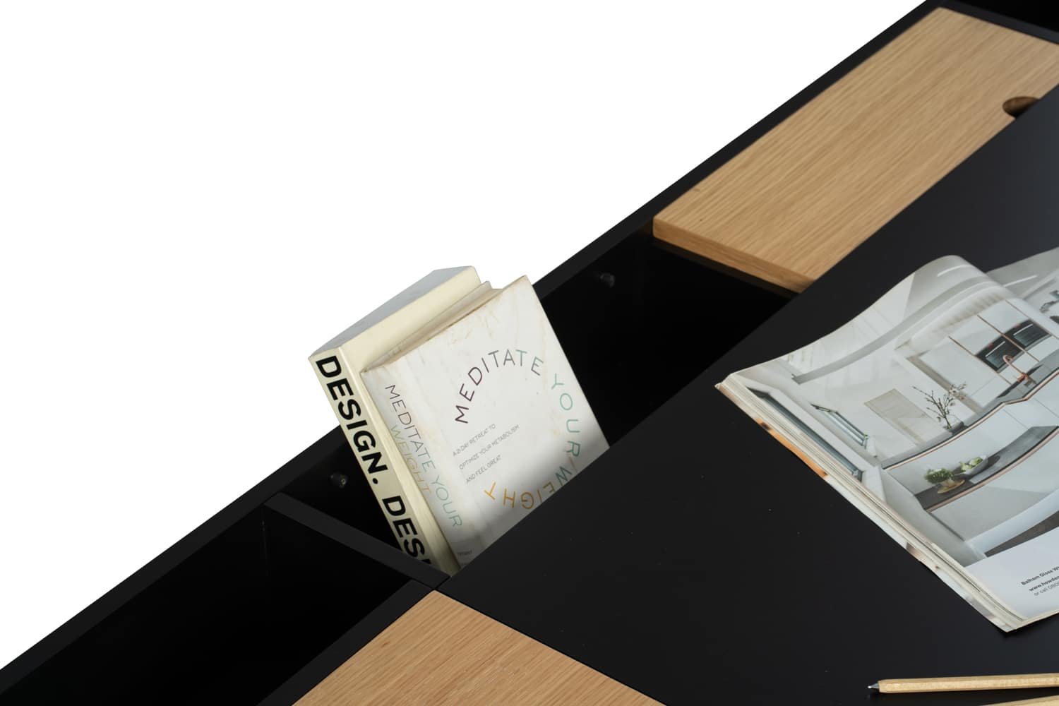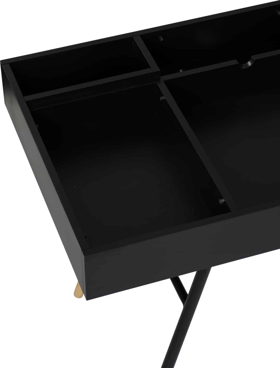 Morse working desk in Black Ash Veneer and Oak Veneer with Matt Black Epoxy leg