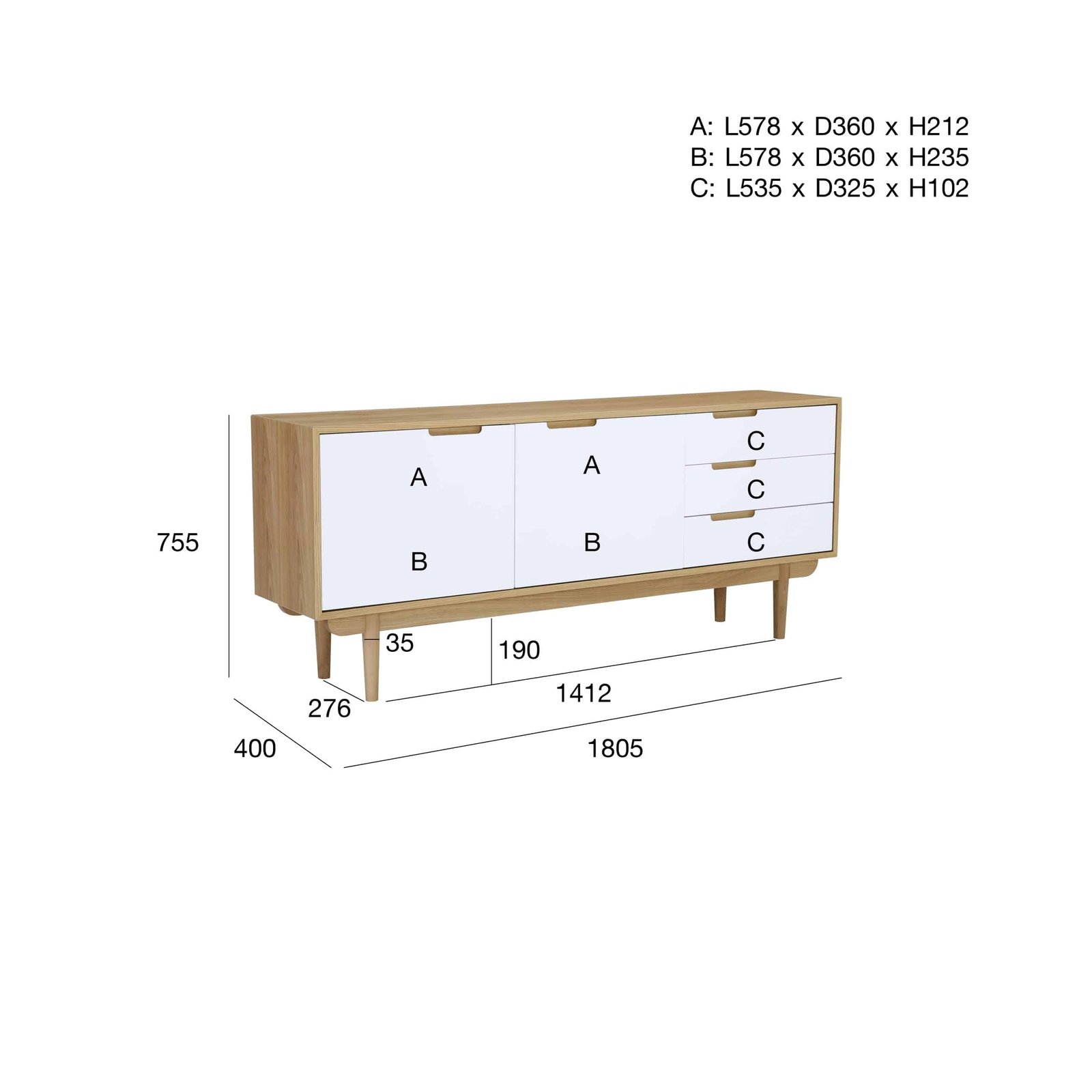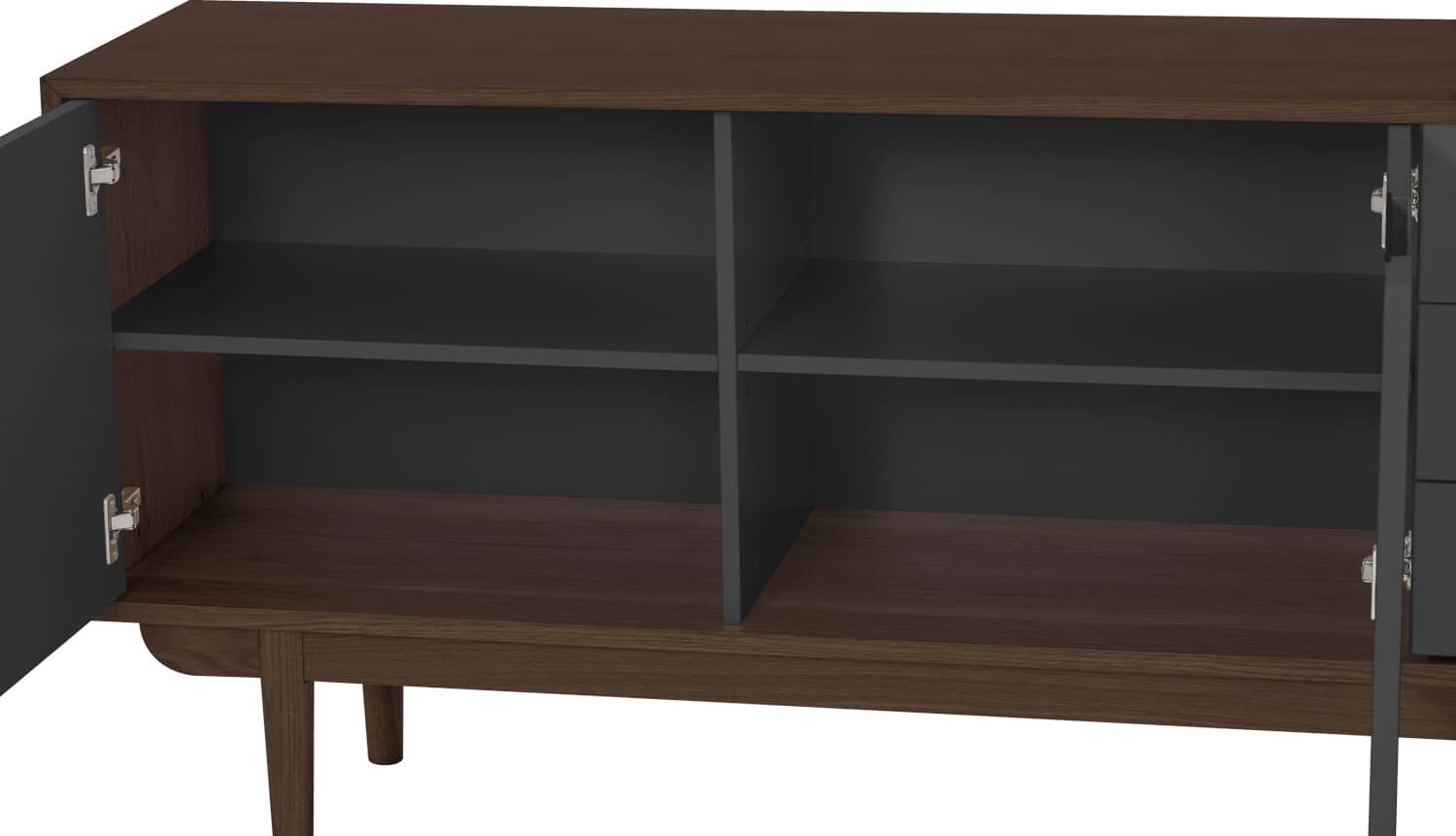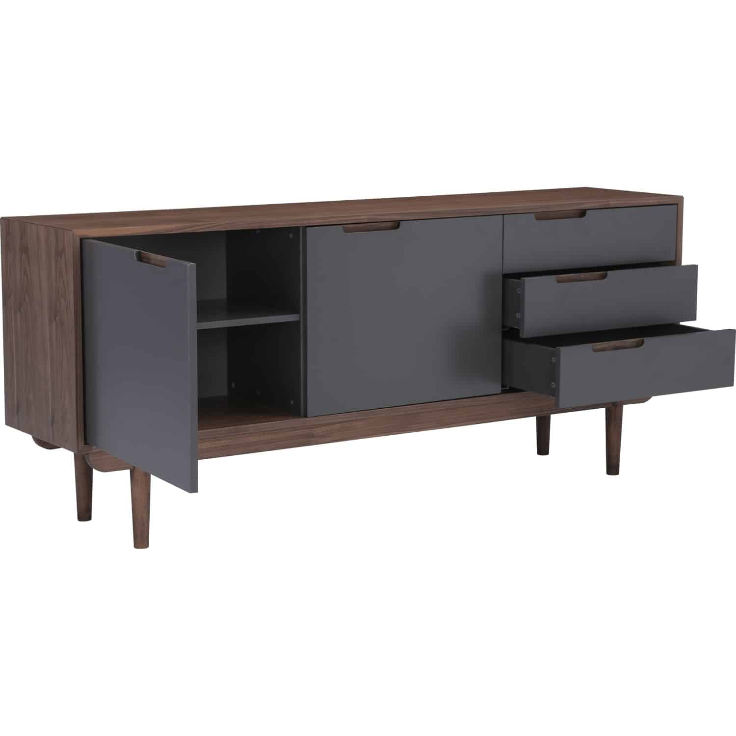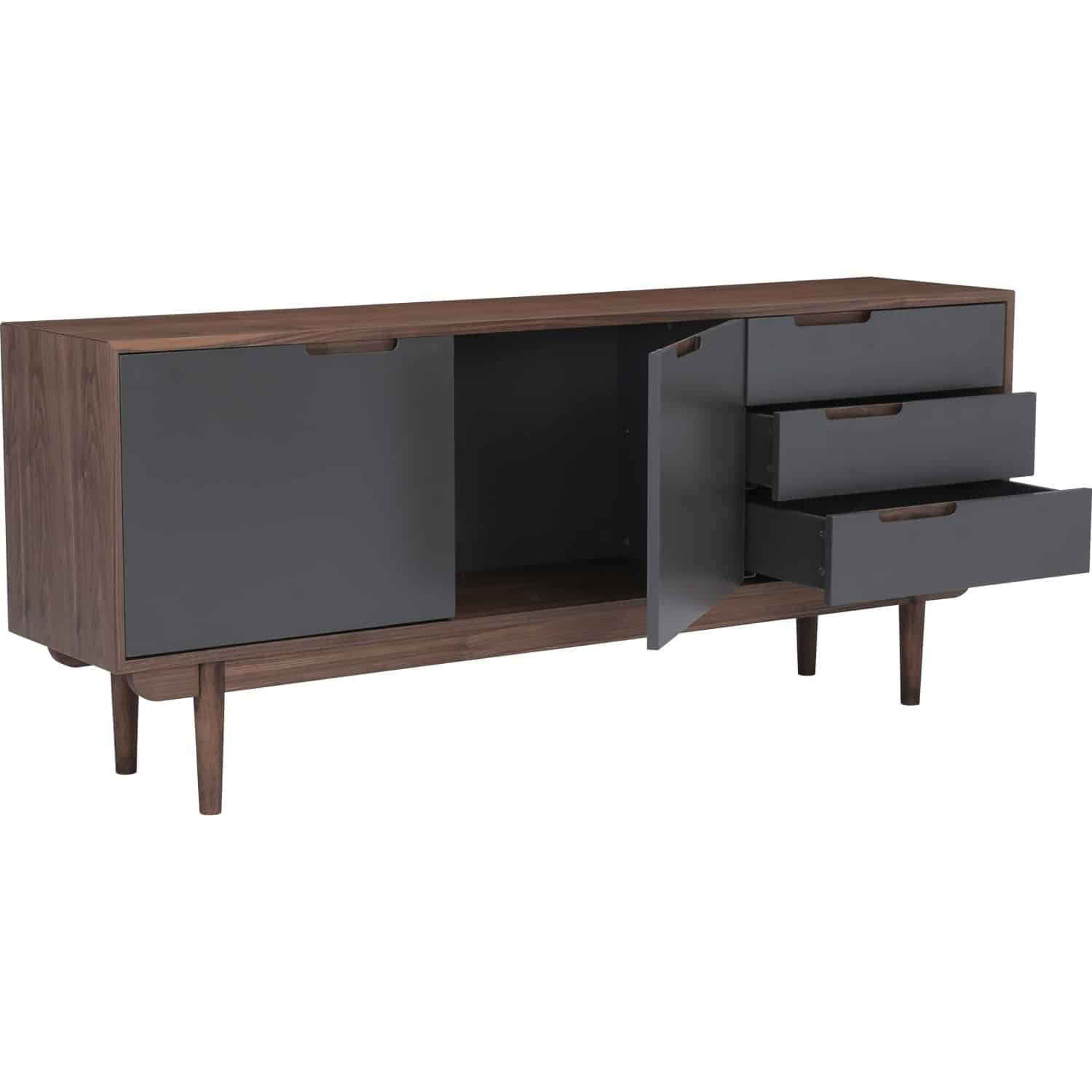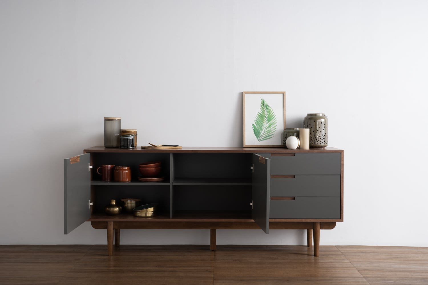 Nakula 1.8M Sideboard in Walnut veneer body, Gunmetal Grey colour door with Walnut colour leg
