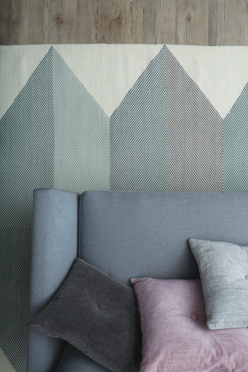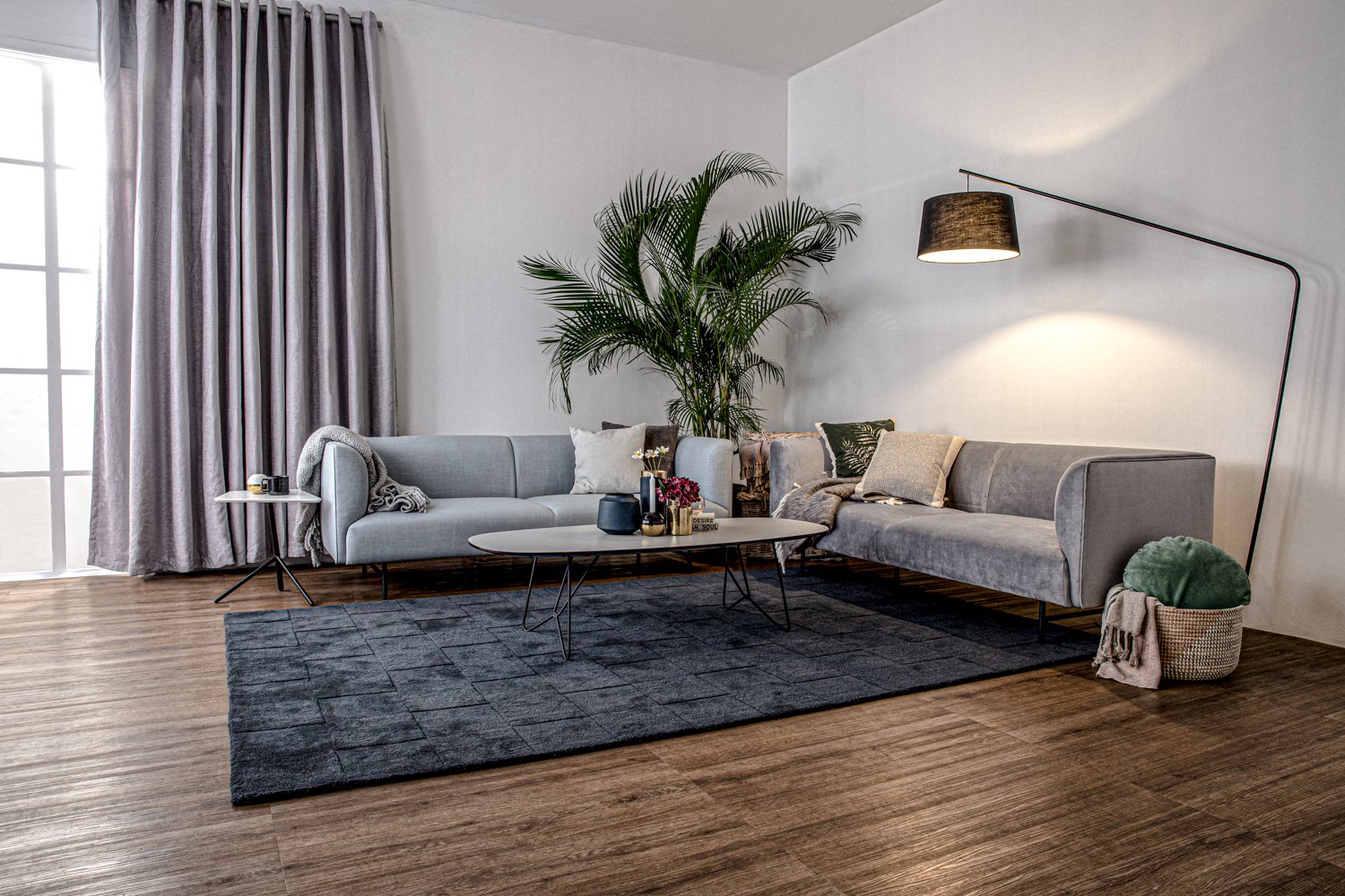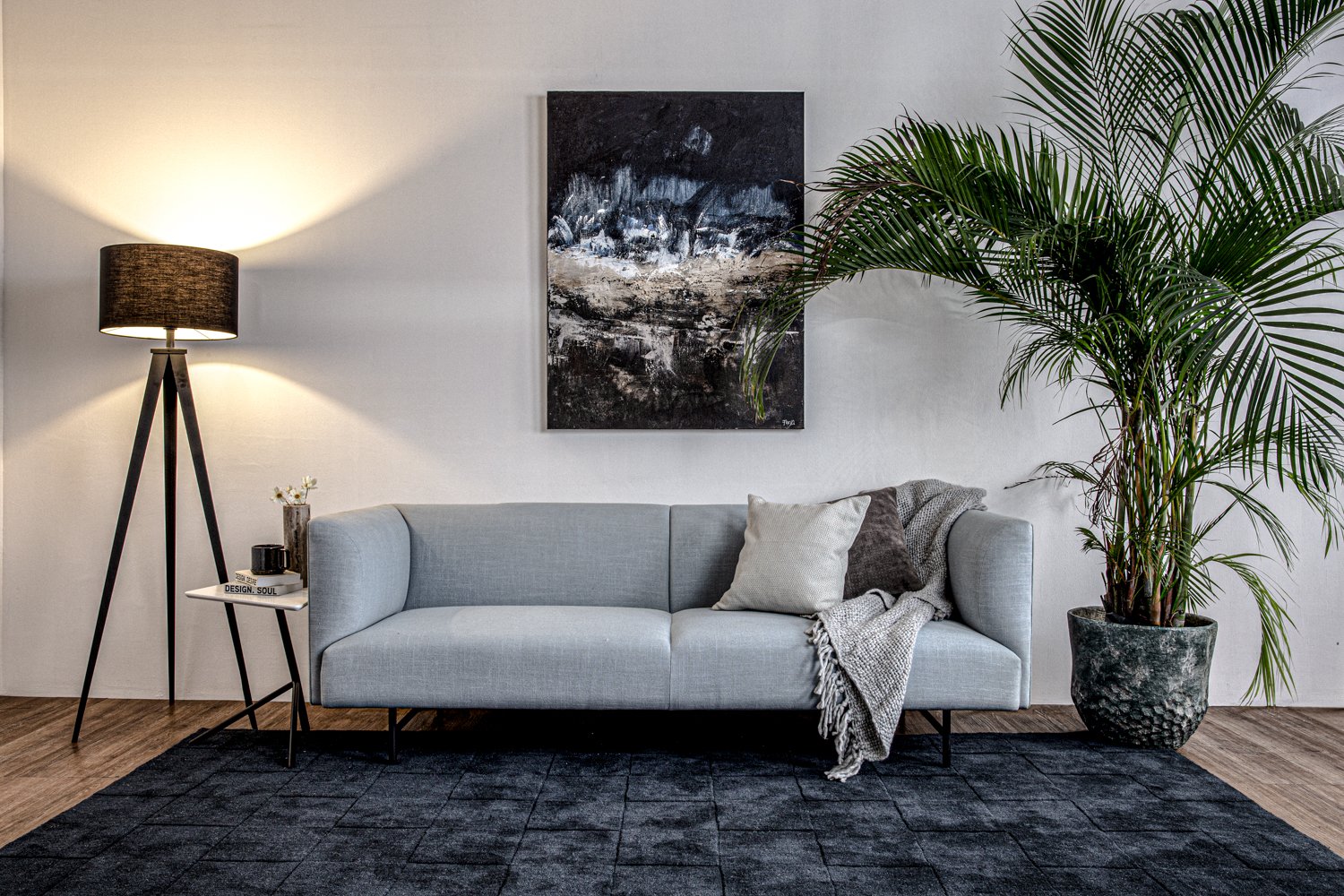 Navara Sofa with Matt Black Epoxy leg, Aquamarine colour Crepon fabric