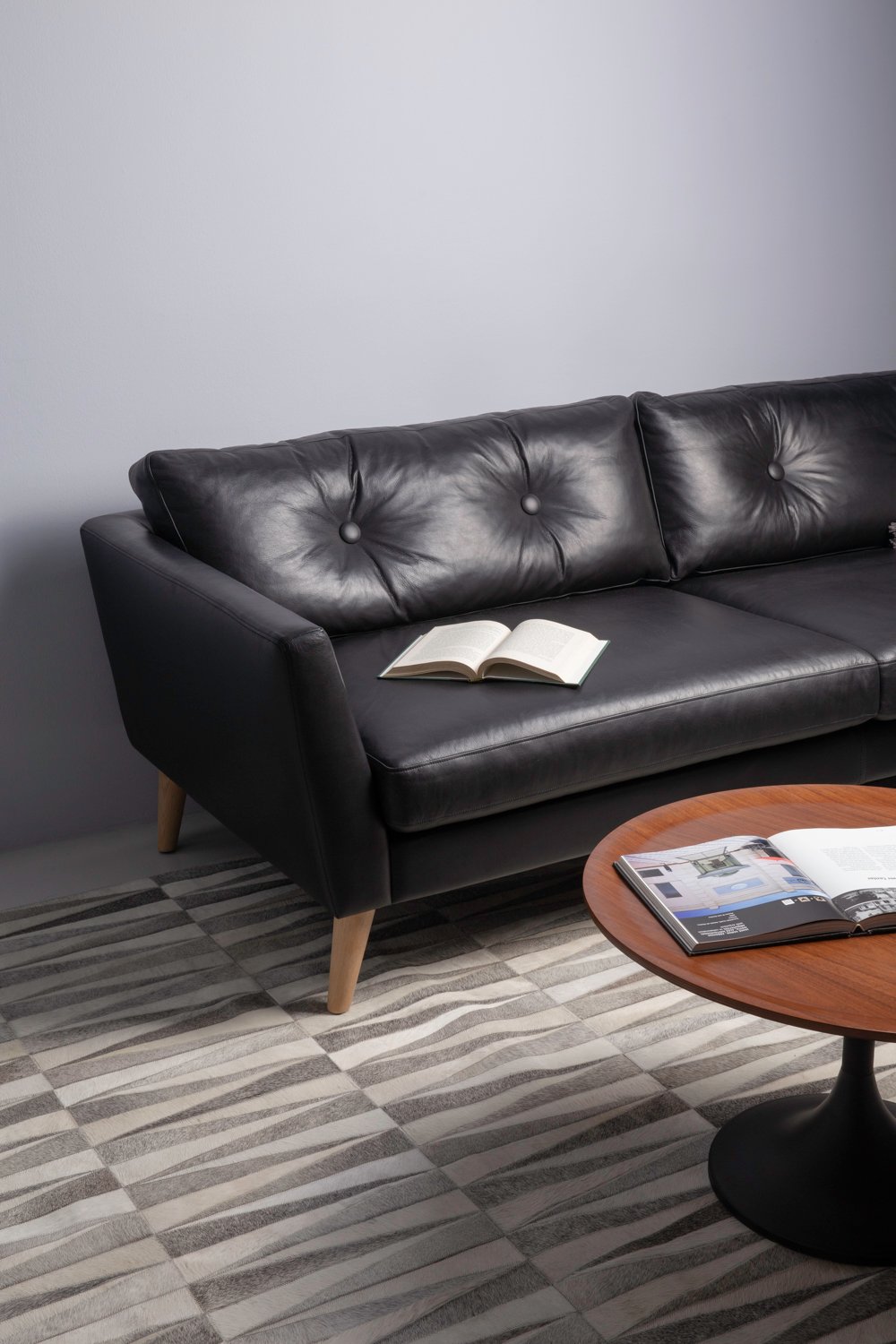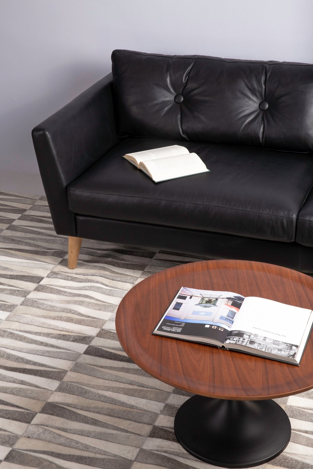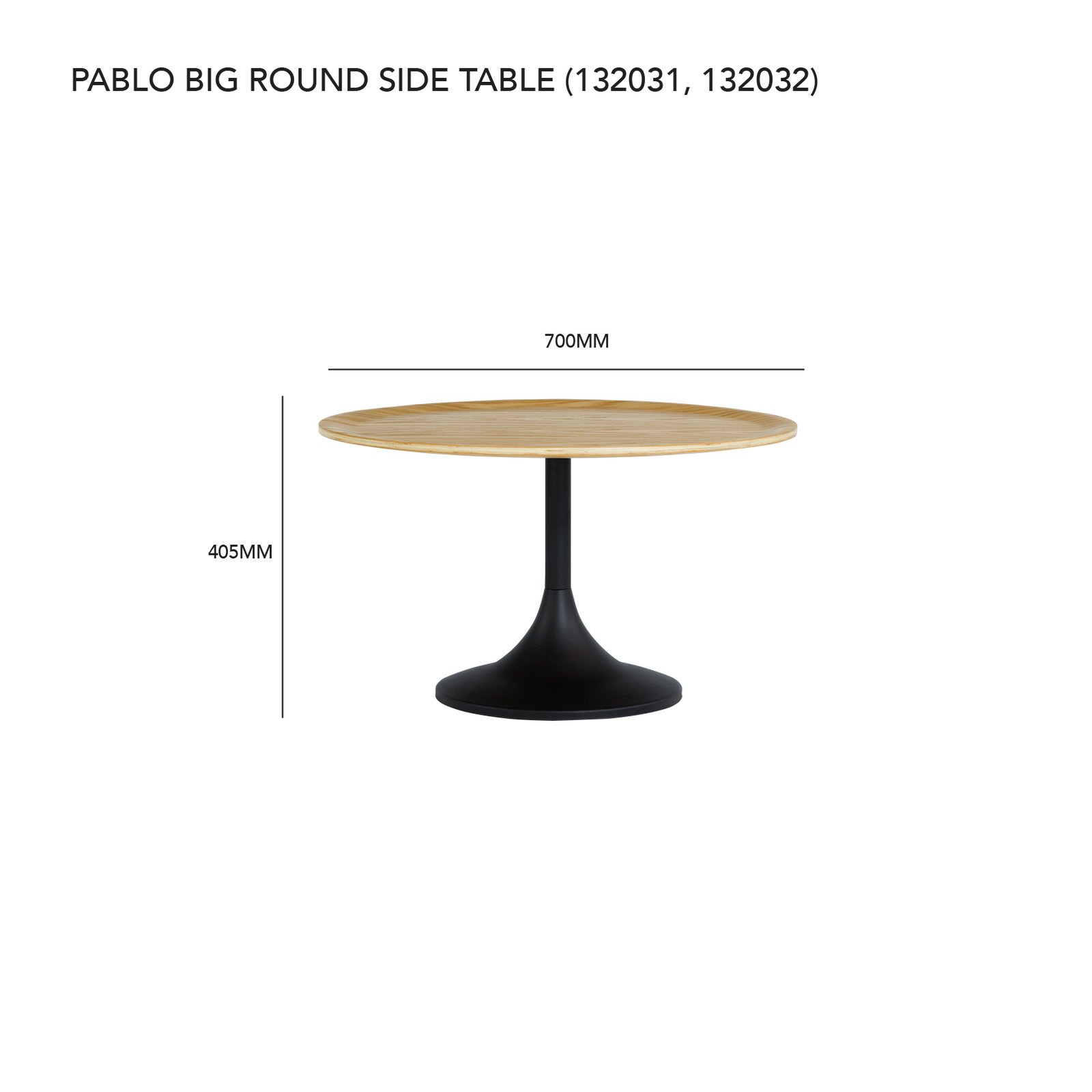 Pablo big round side table in Walnut colour top, Matt Black Epoxy leg