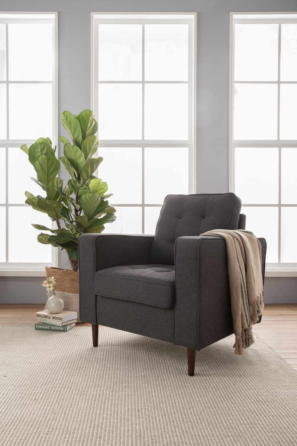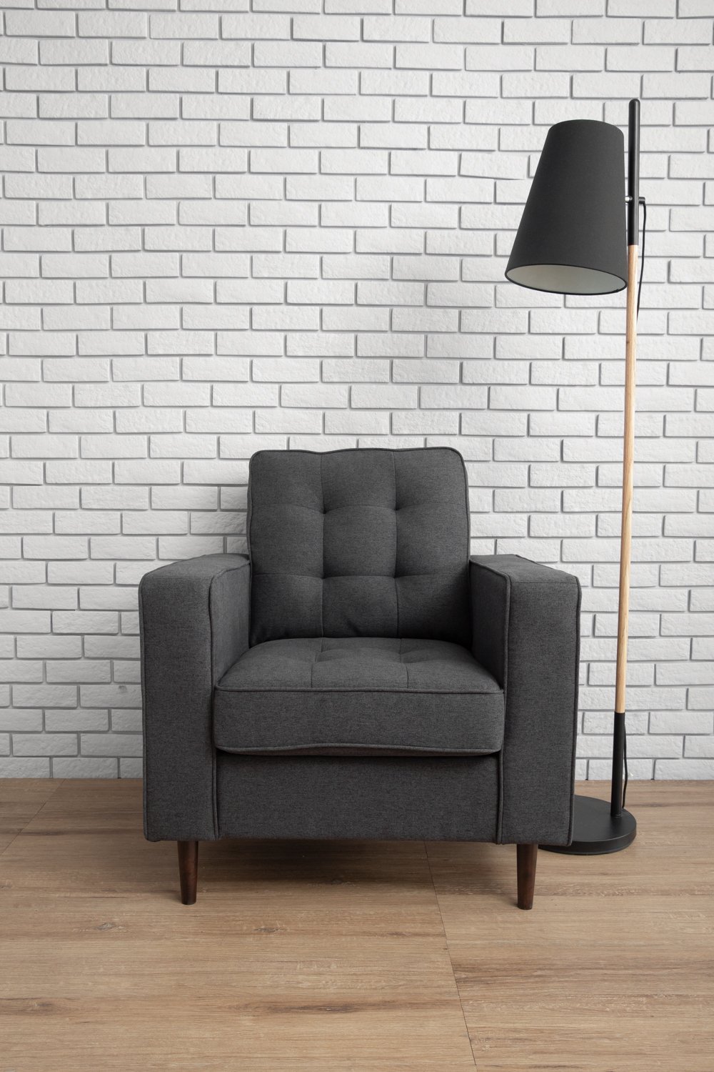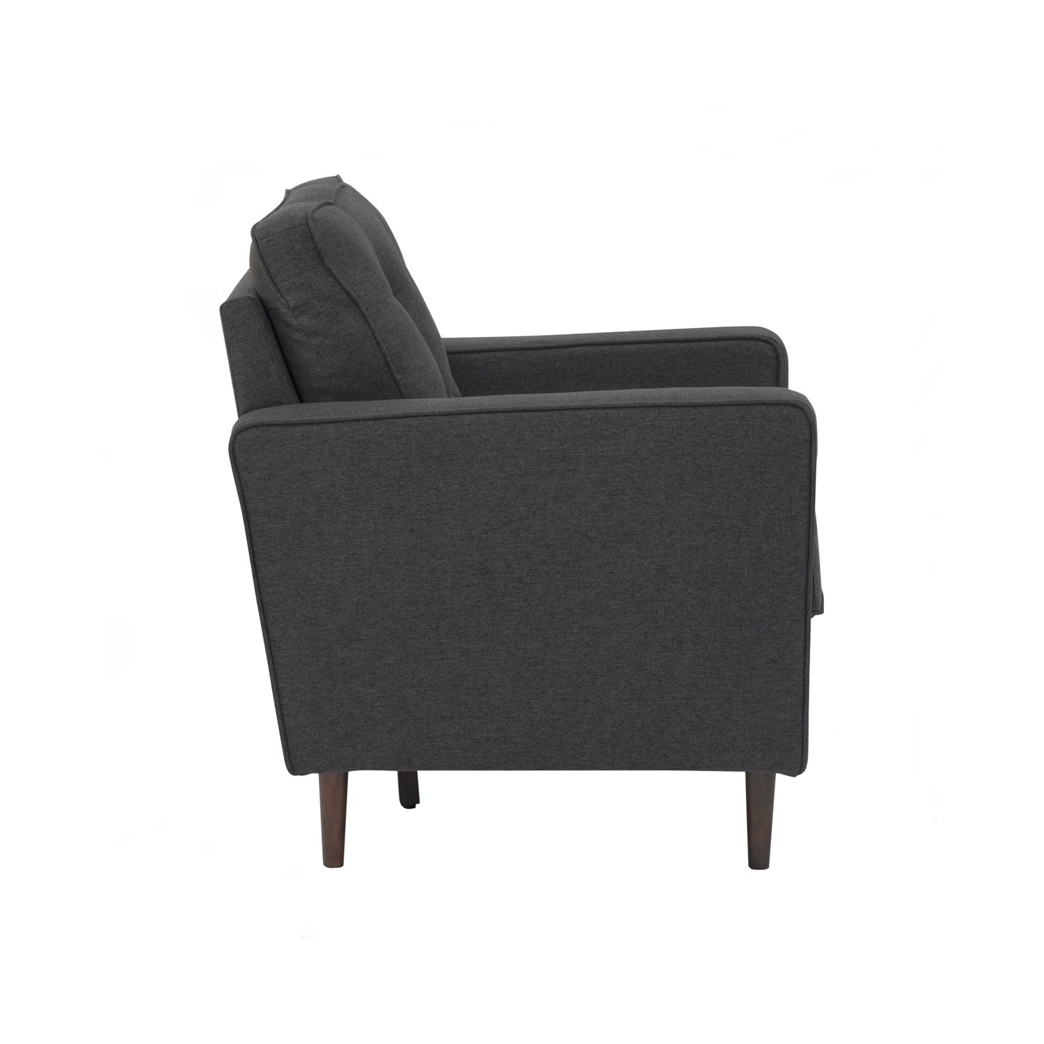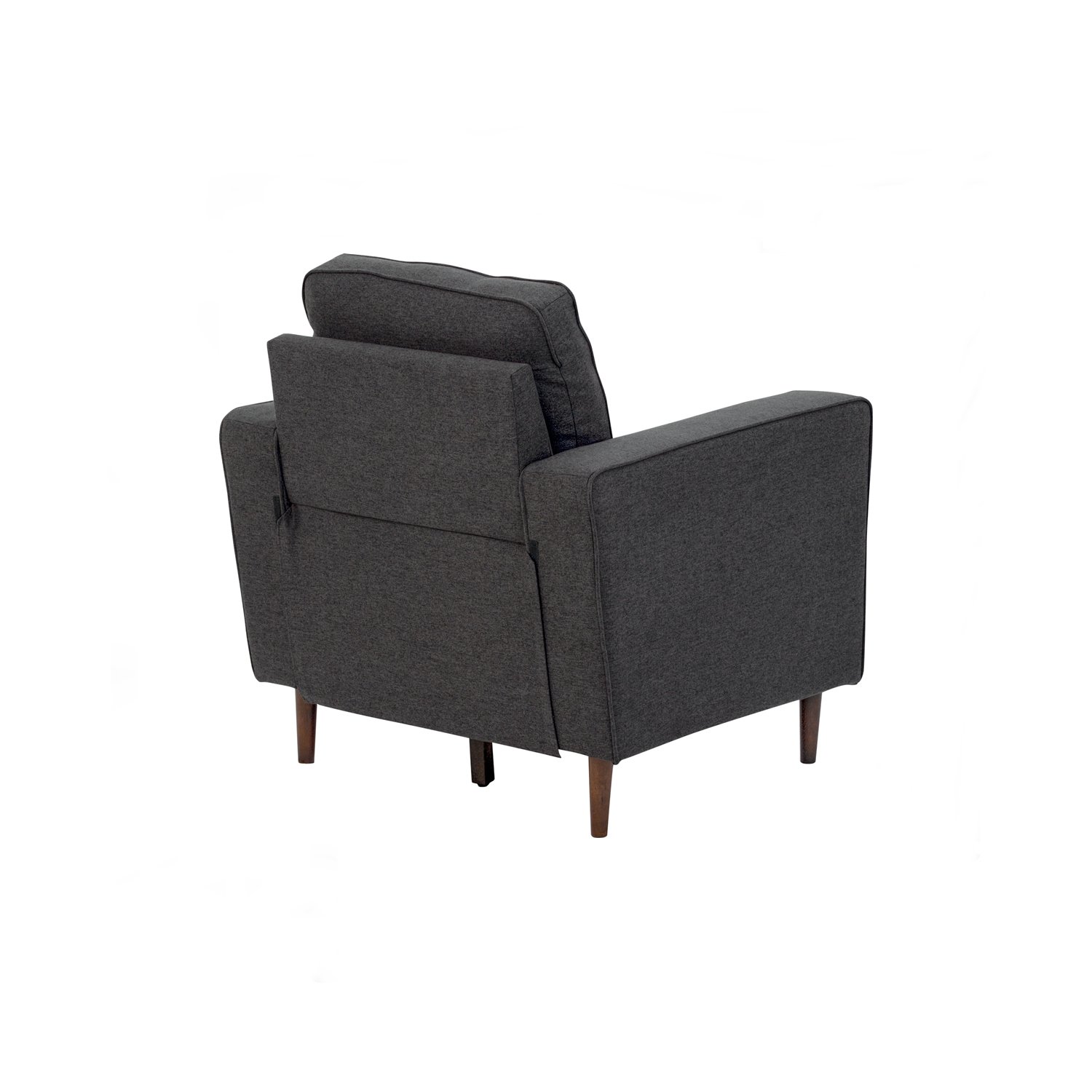 Royce 1 seater sofa in Cocoa colour leg, Seal colour Dimity fabric body