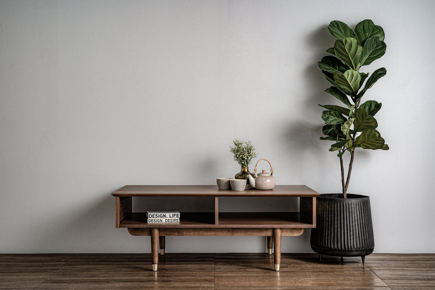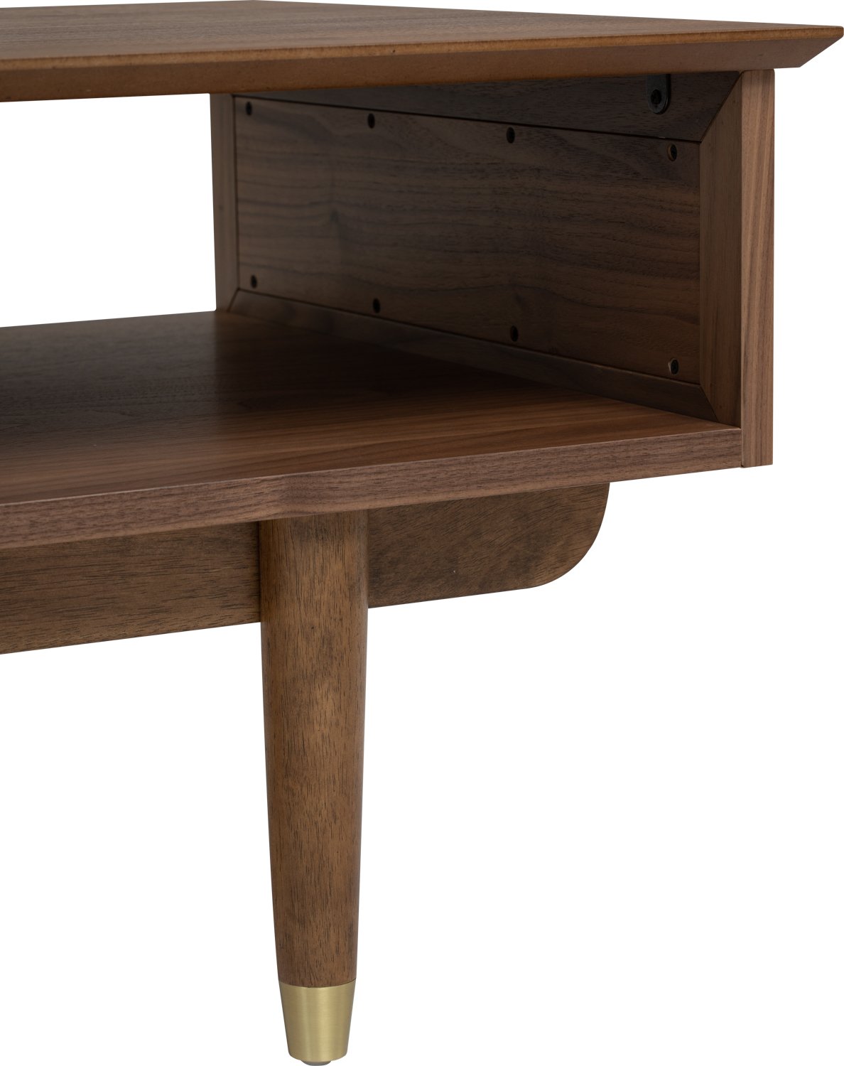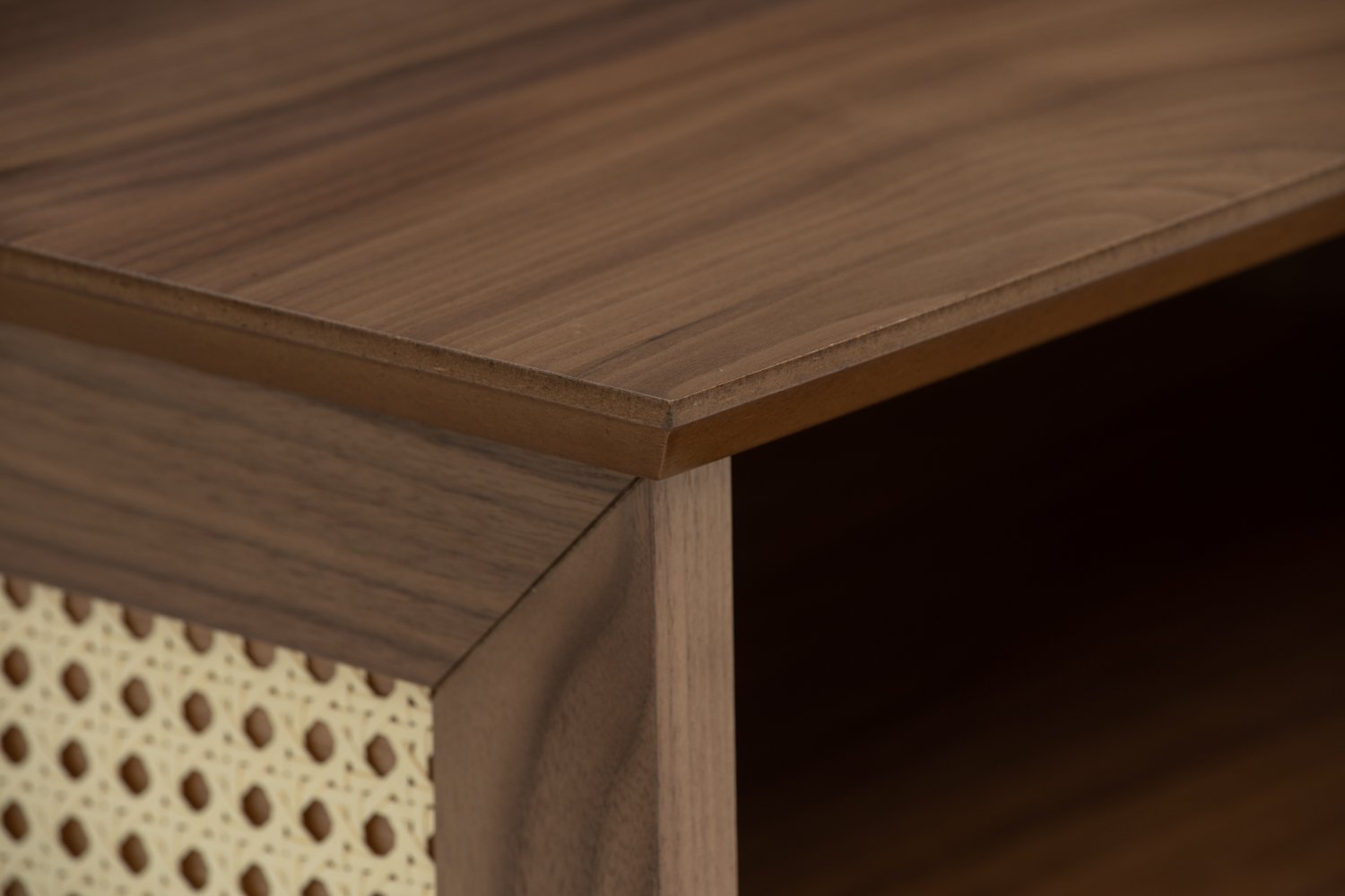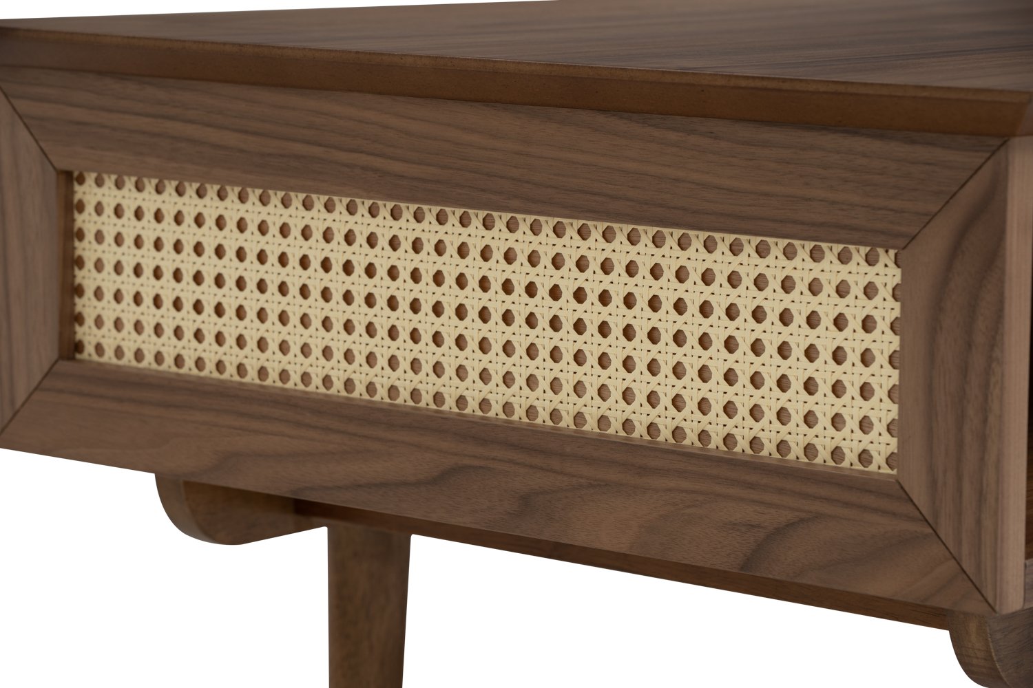 Royston coffee table in Walnut veneer body, Natural colour synthetic rattan side and with Gold colour leg