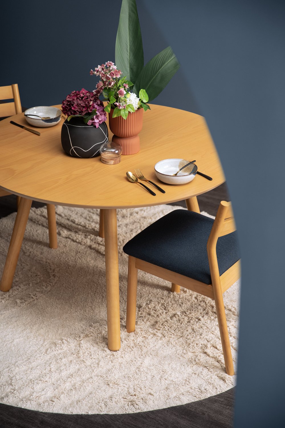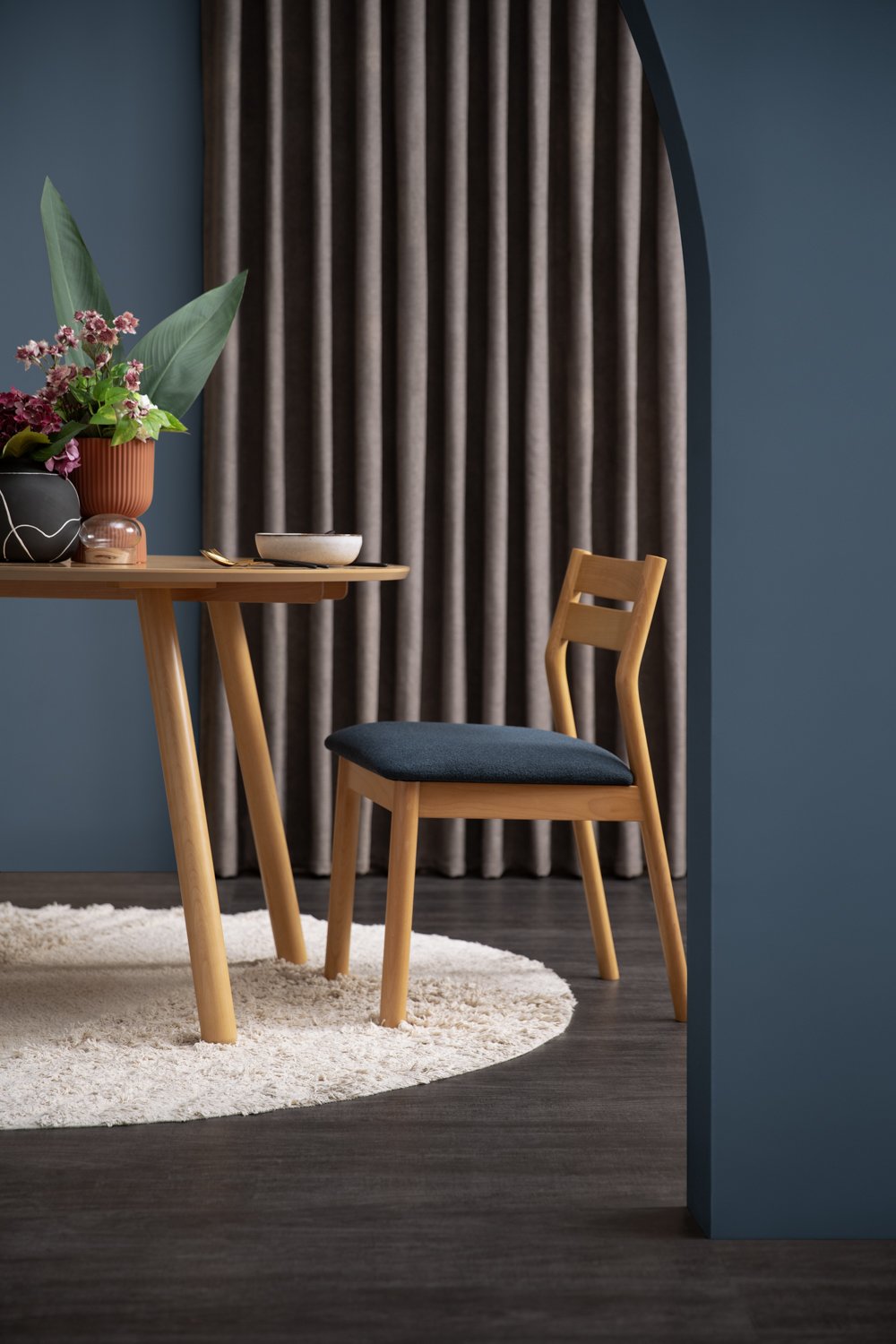 Rumi dining chair with Natural colour frame, Deep Blue colour Lake fabric seat