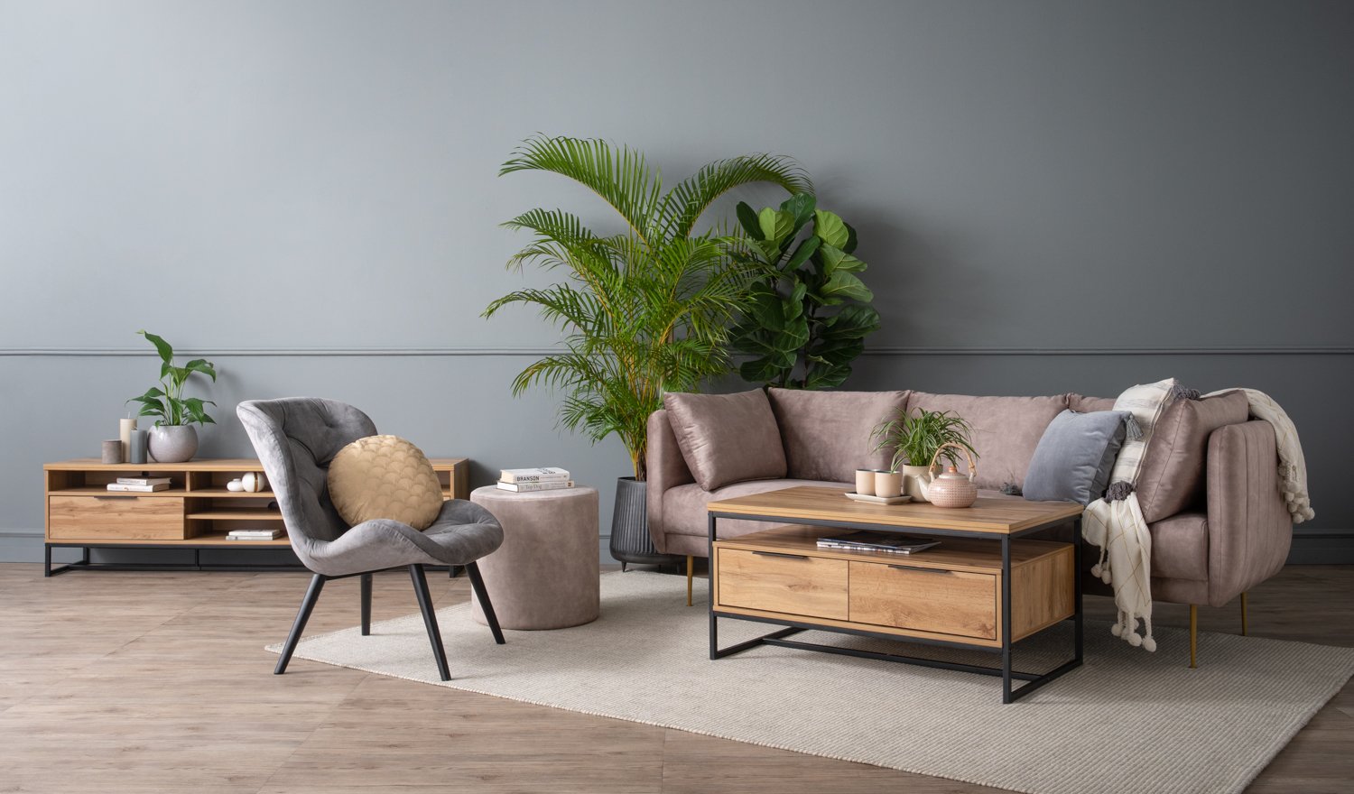 Salomi Lounge Chair with Black colour leg, Grey colour Arctus fabric