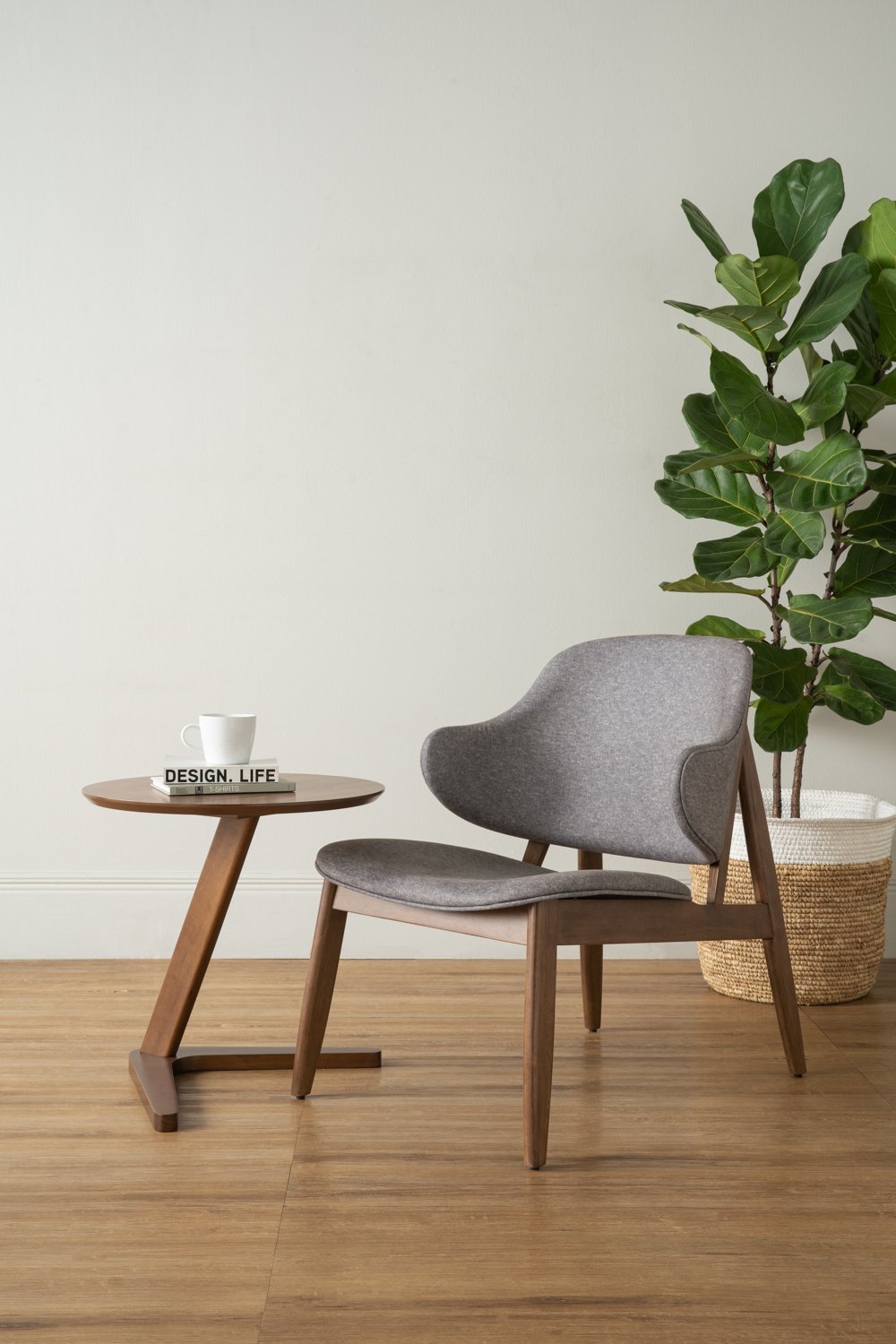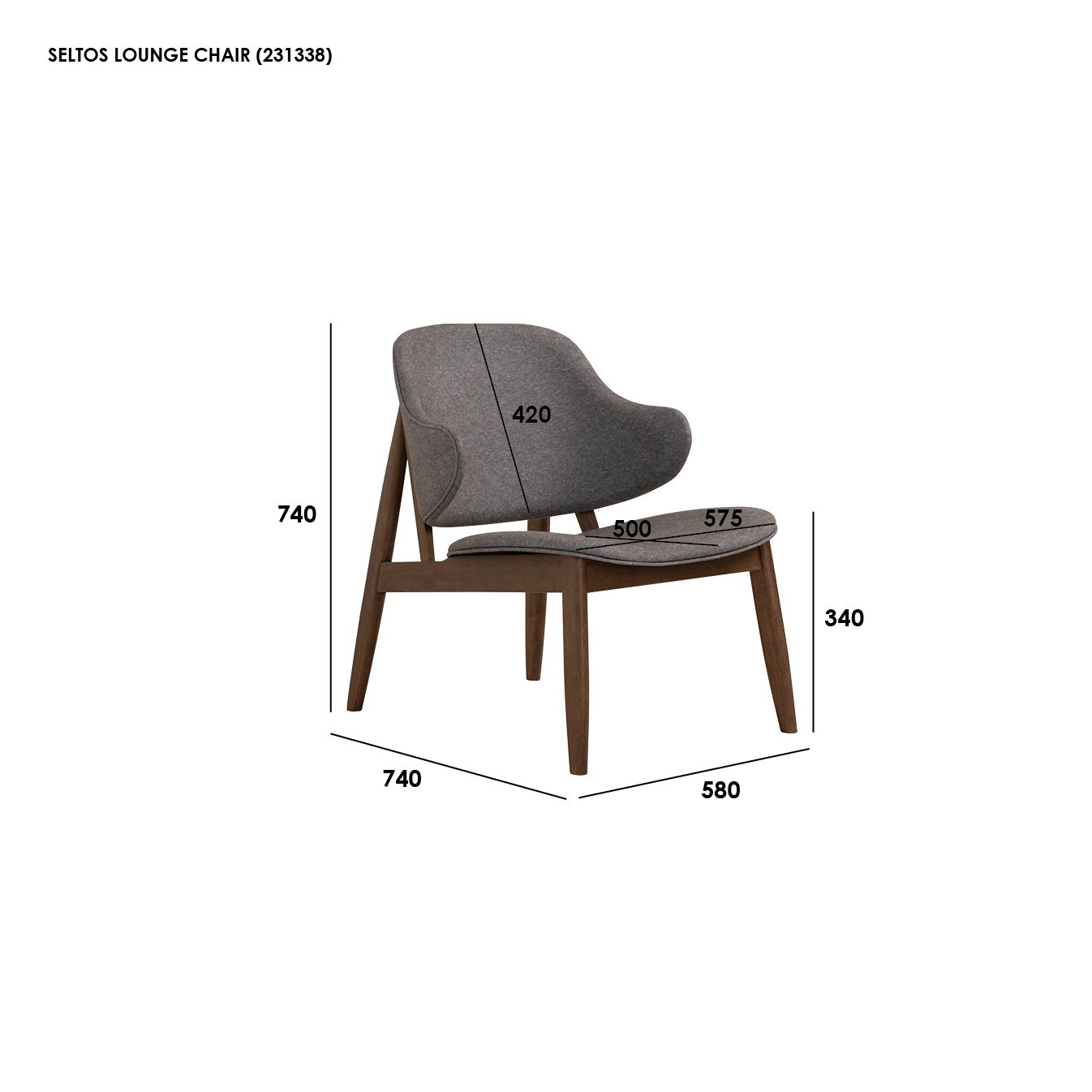 Seltos lounge chair with Cocoa colour frame, Oyster Bay colour Chevron fabric