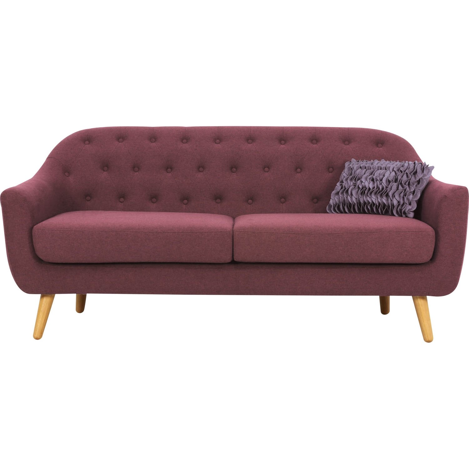 Senku 3 seater sofa with Oak leg, Orchid colour body & button in Dimity fabric