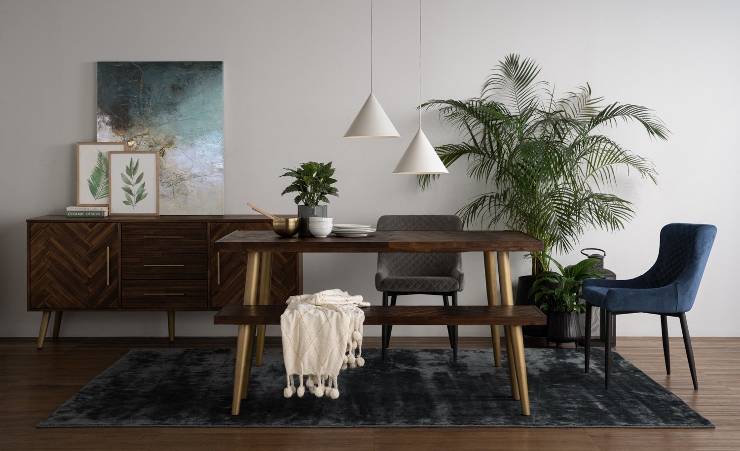 Sivan 900×1600 Dining Table with Dijon colour leg, Chocolate Tyrolean Beech body