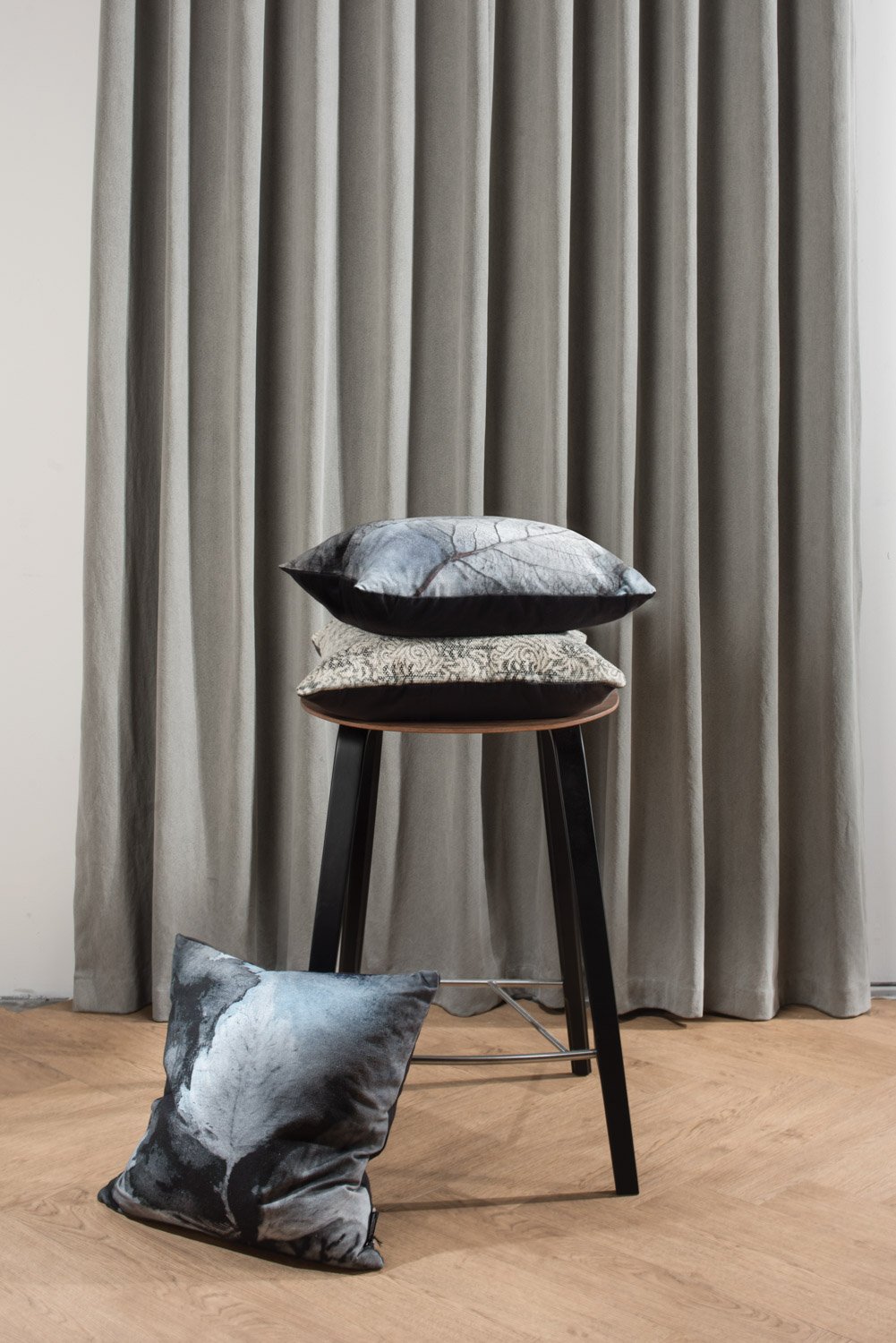 Stacy counter chair with Black colour leg, Walnut veneer seat and backrest