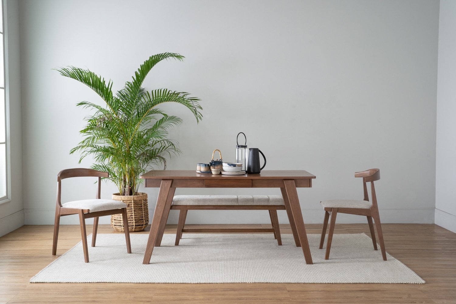 Tomiva 800×1500 Dining Table in Cocoa colour leg, Walnut veneer top