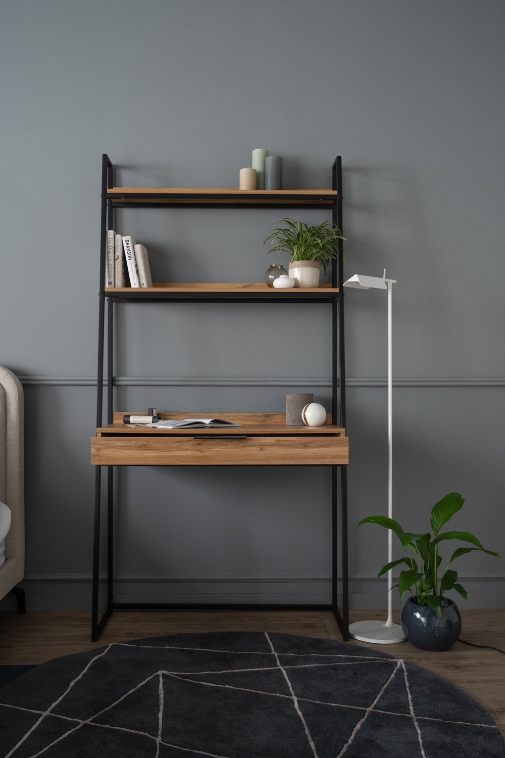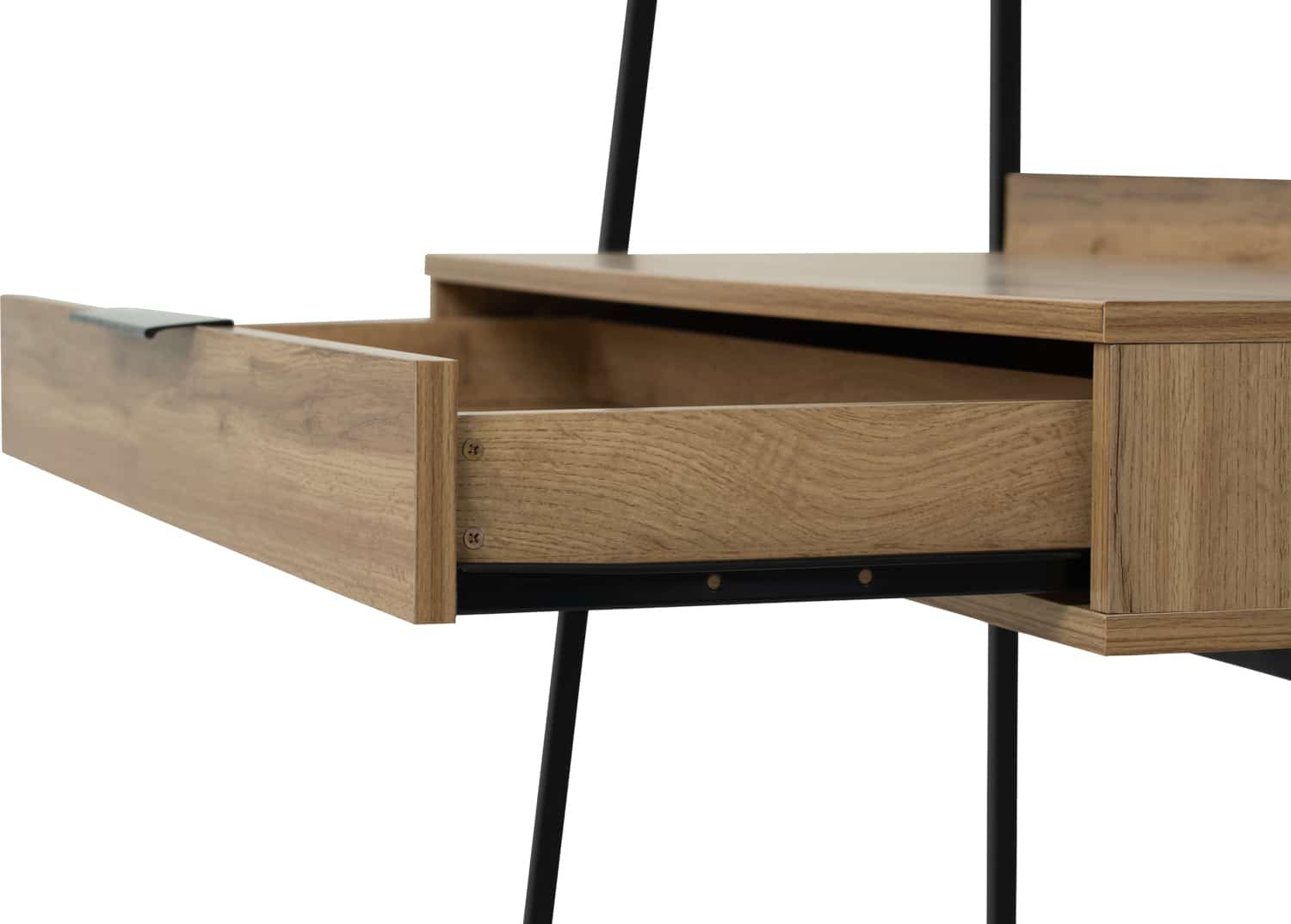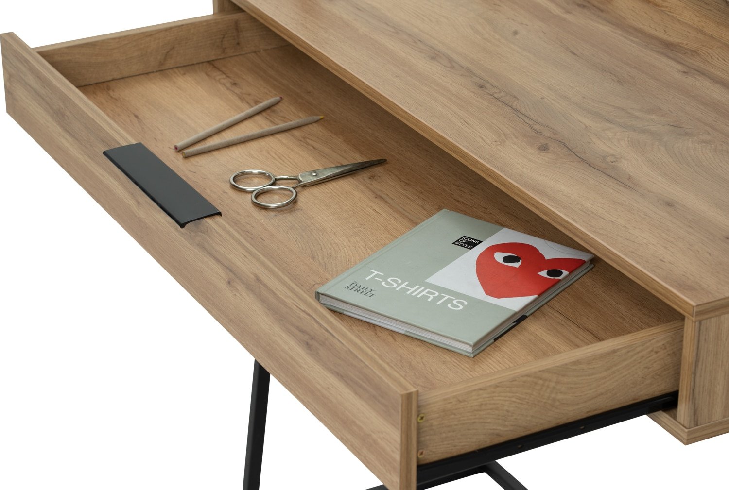 Waldo Working Desk in Wotan Oak melamine body with Matt Black Epoxy colour leg