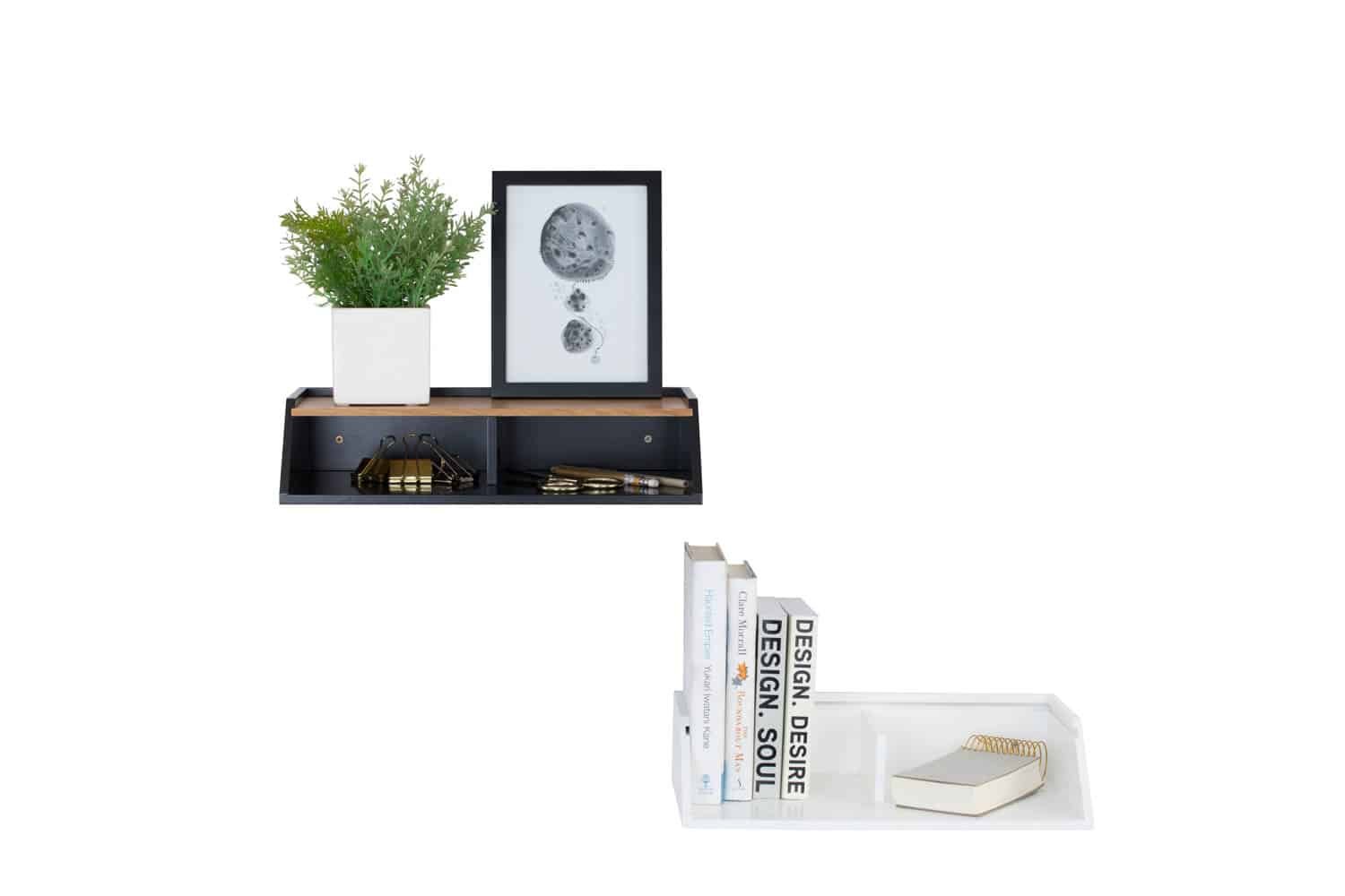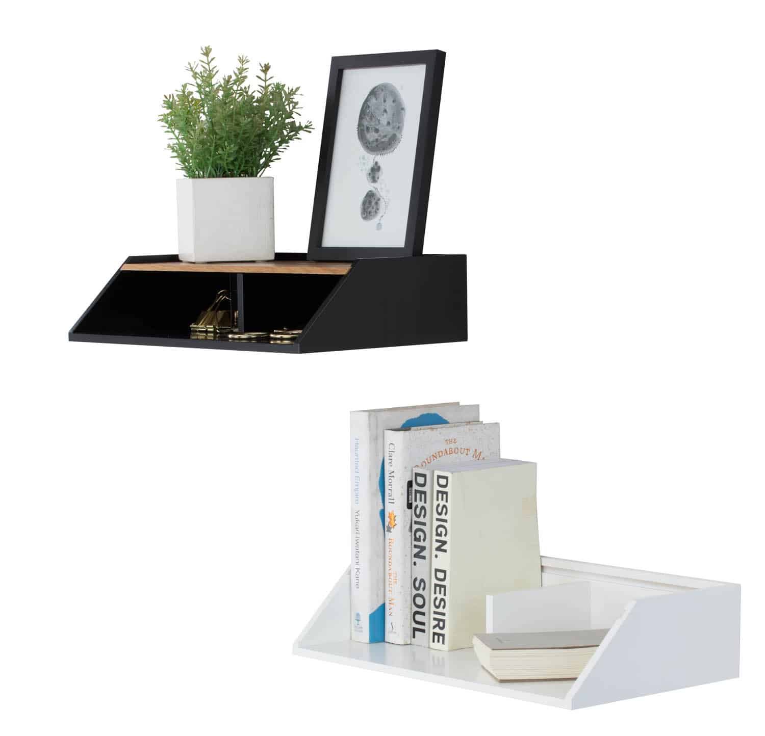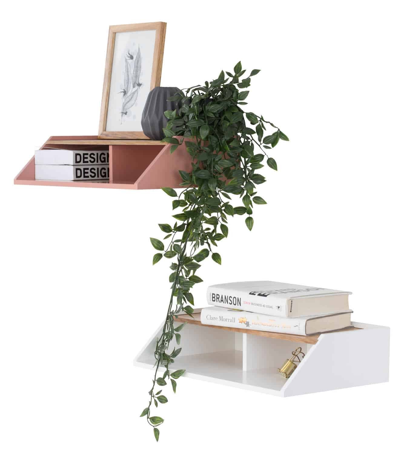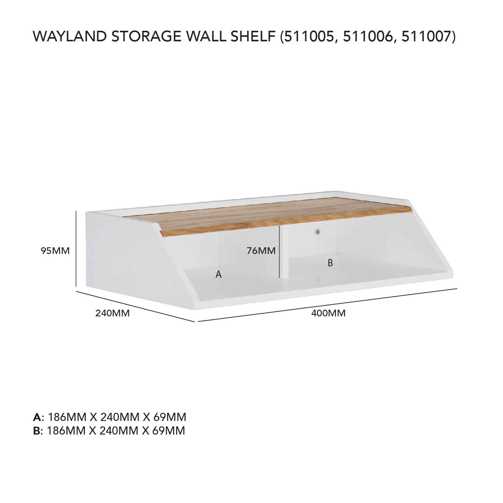 Wayland Storage Wall Shelf in White colour frame, Oak veneer body