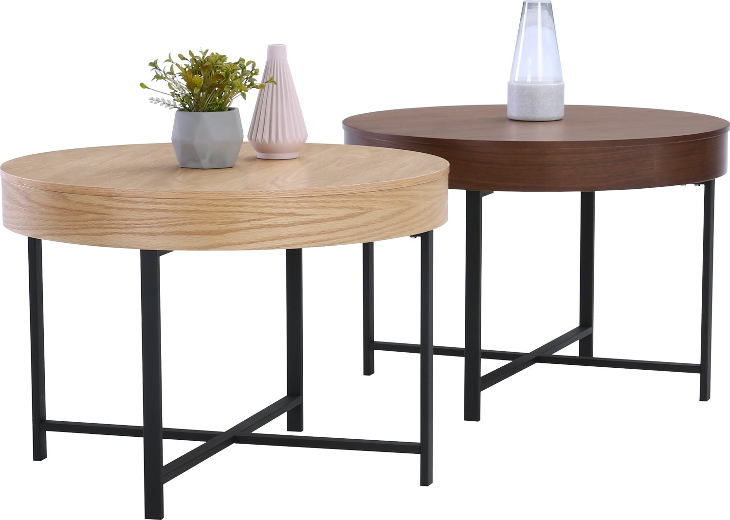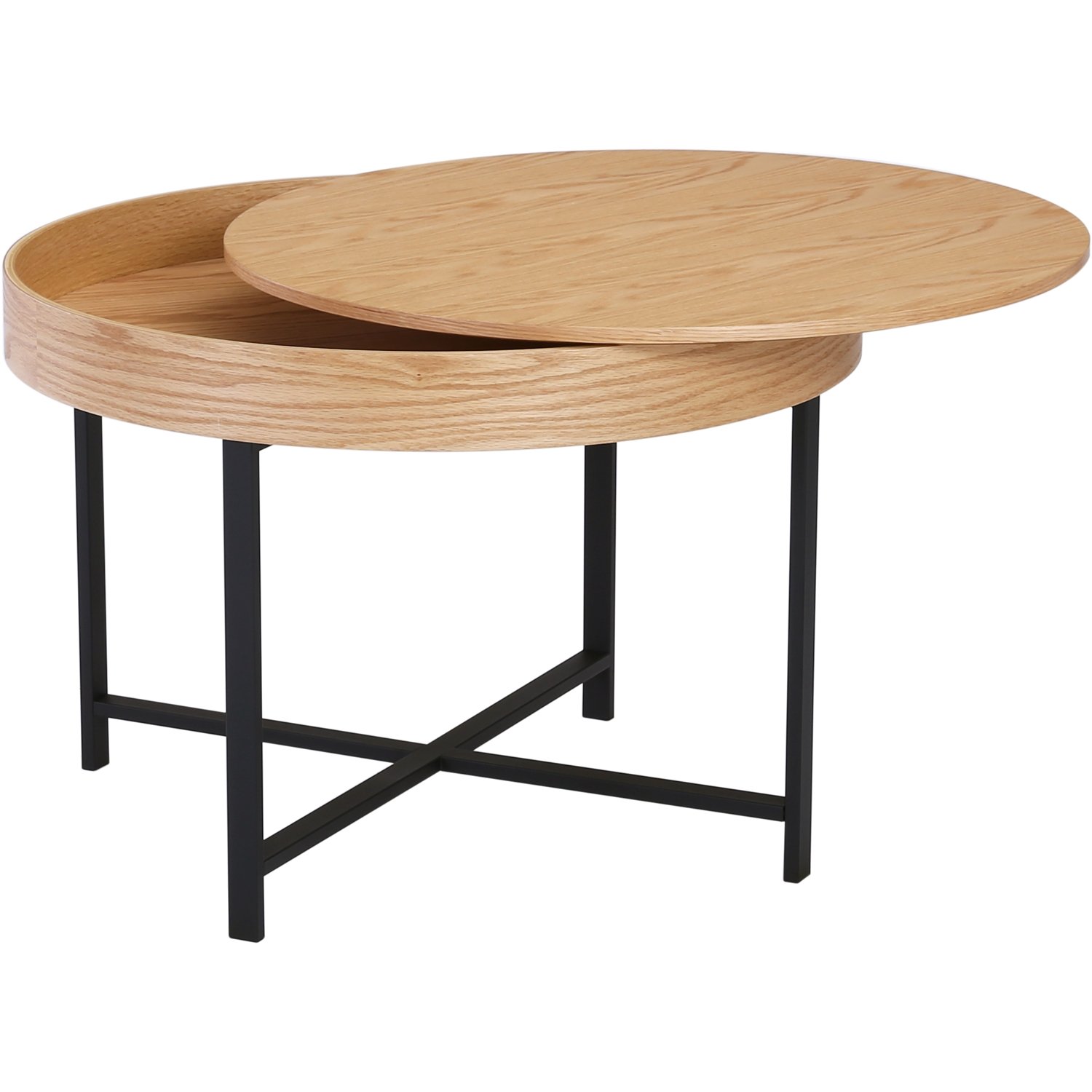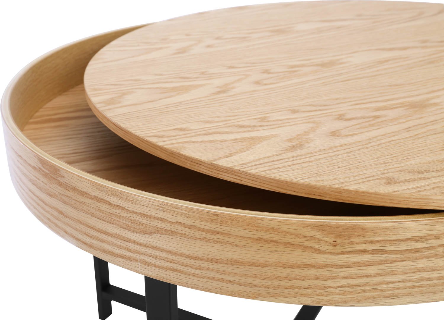 Wolcott storage coffee table in Oak veneer top and frame, Matt Black Epoxy leg