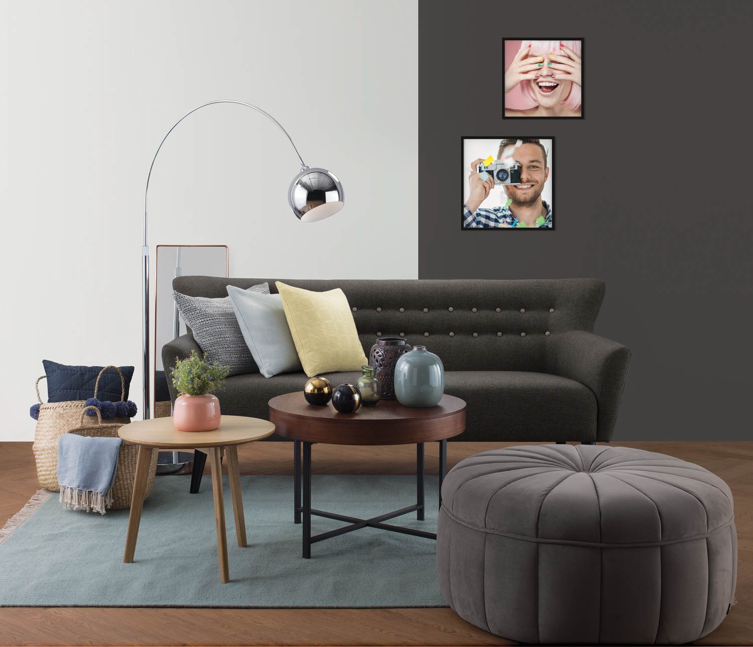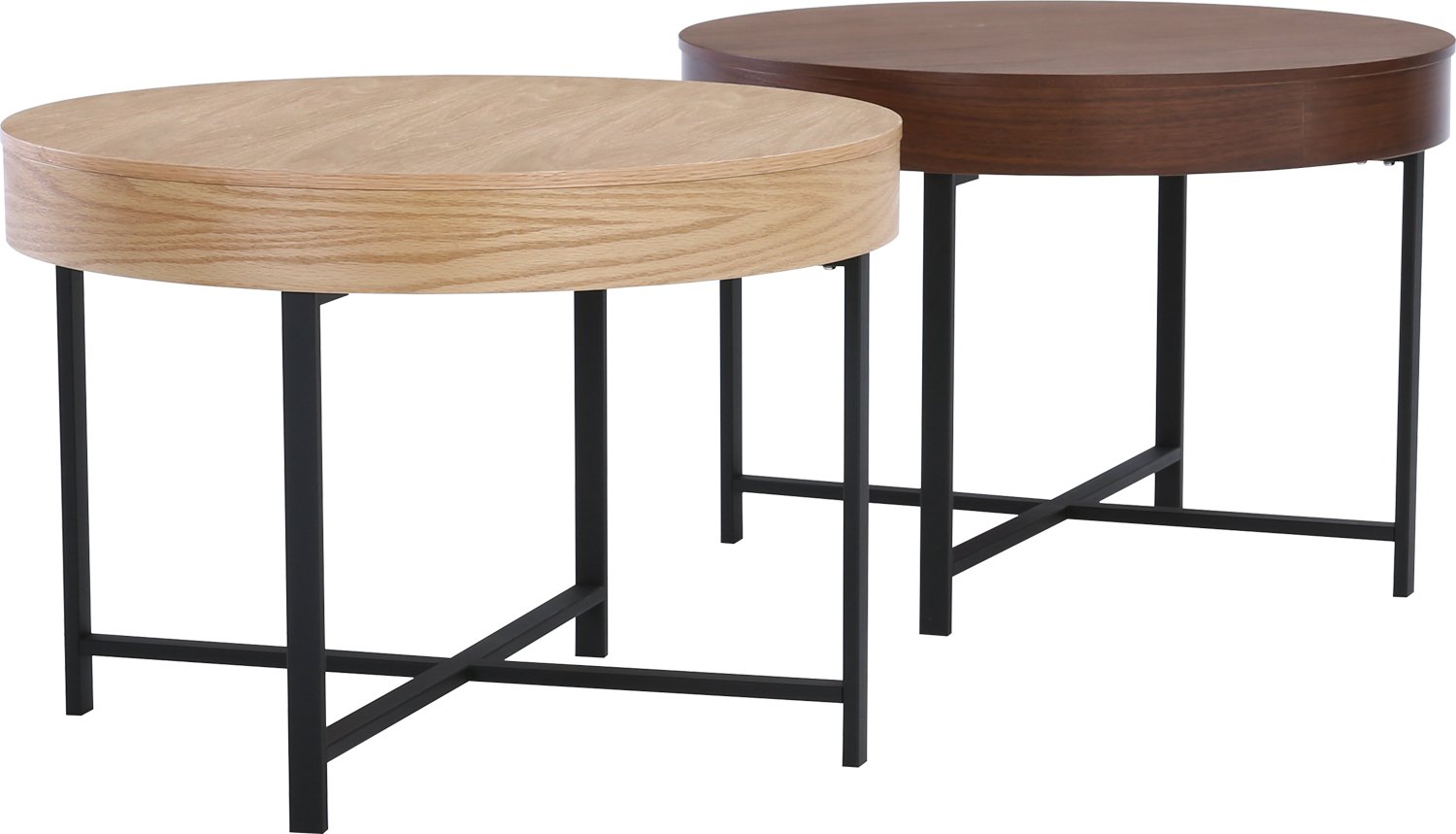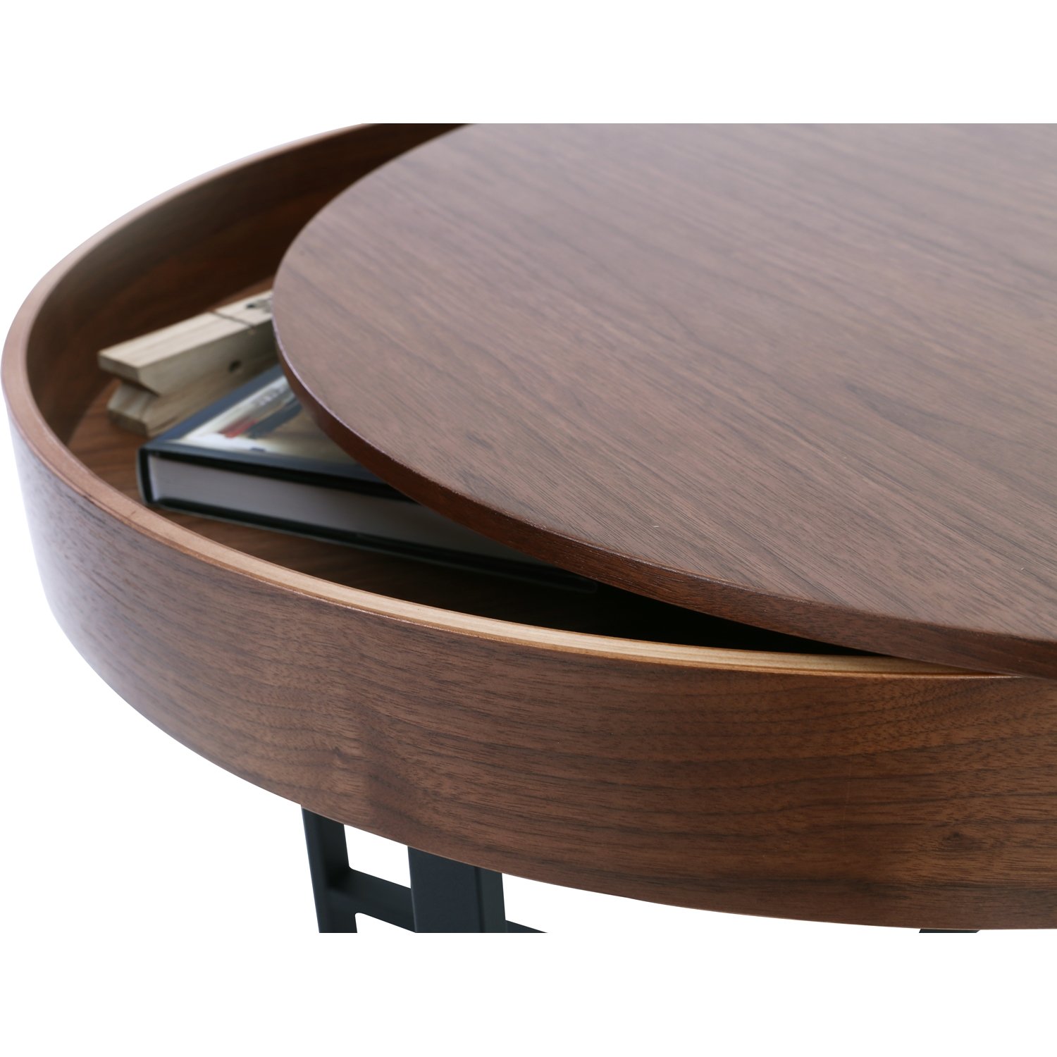 Wolcott storage coffee table in Walnut veneer top and frame, Matt Black Epoxy leg