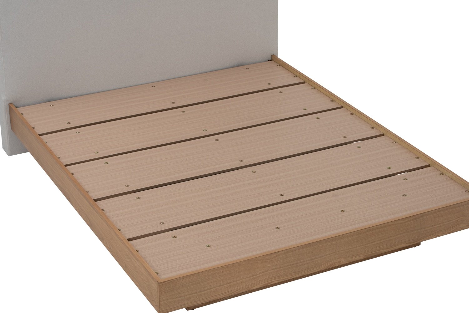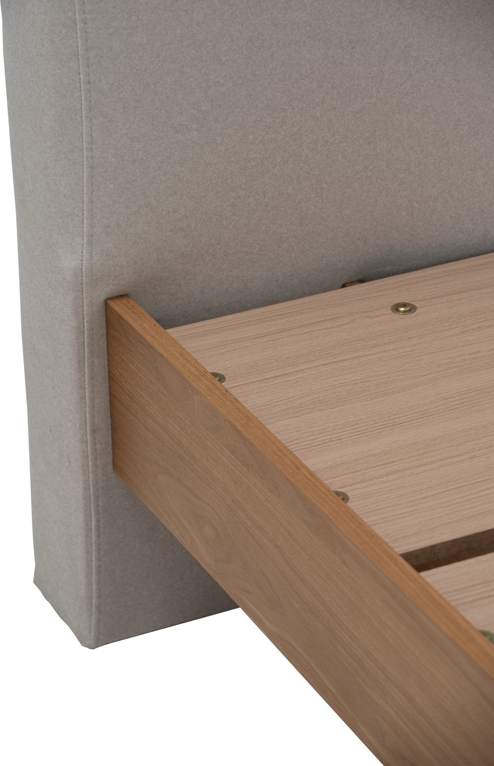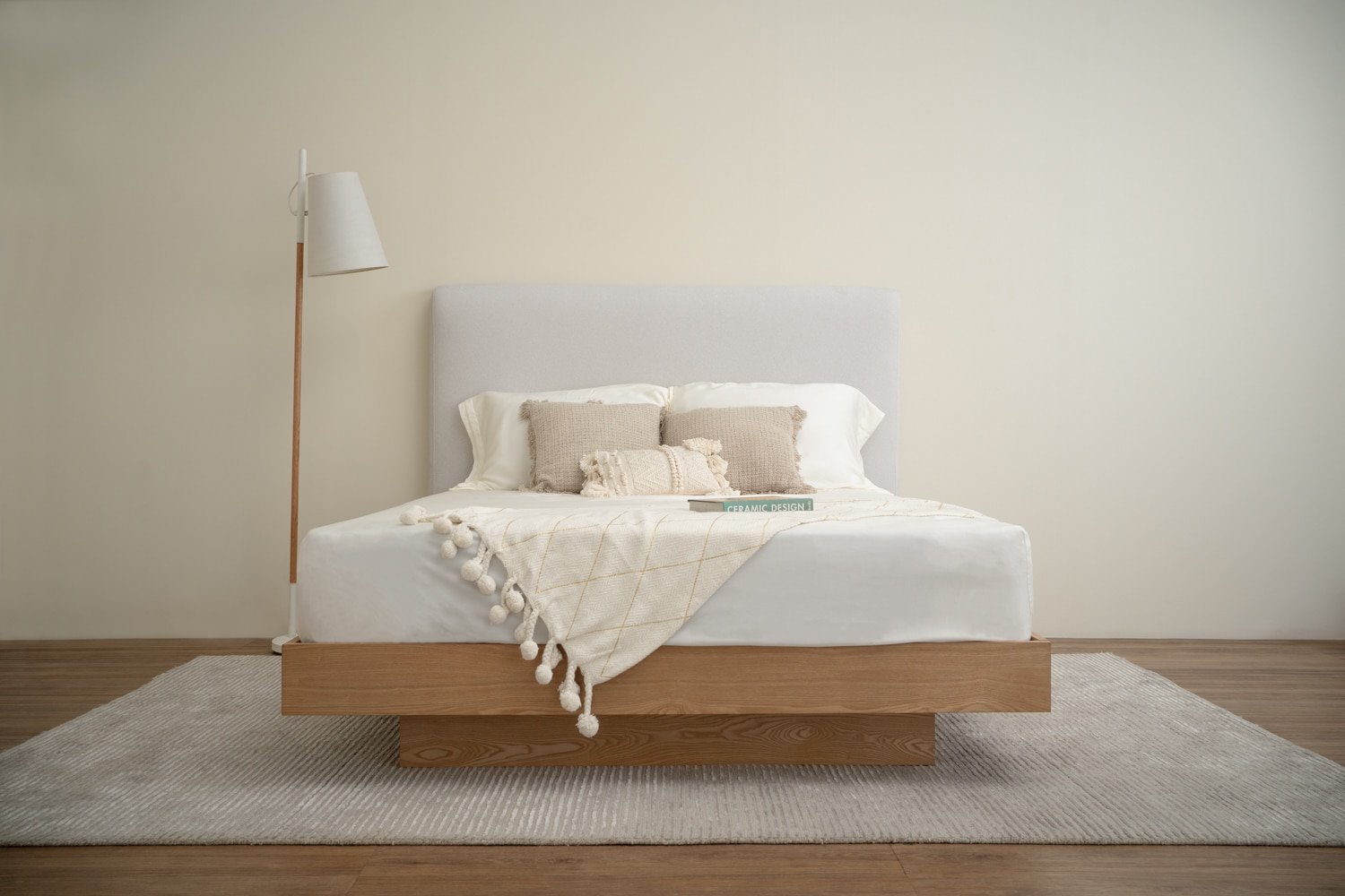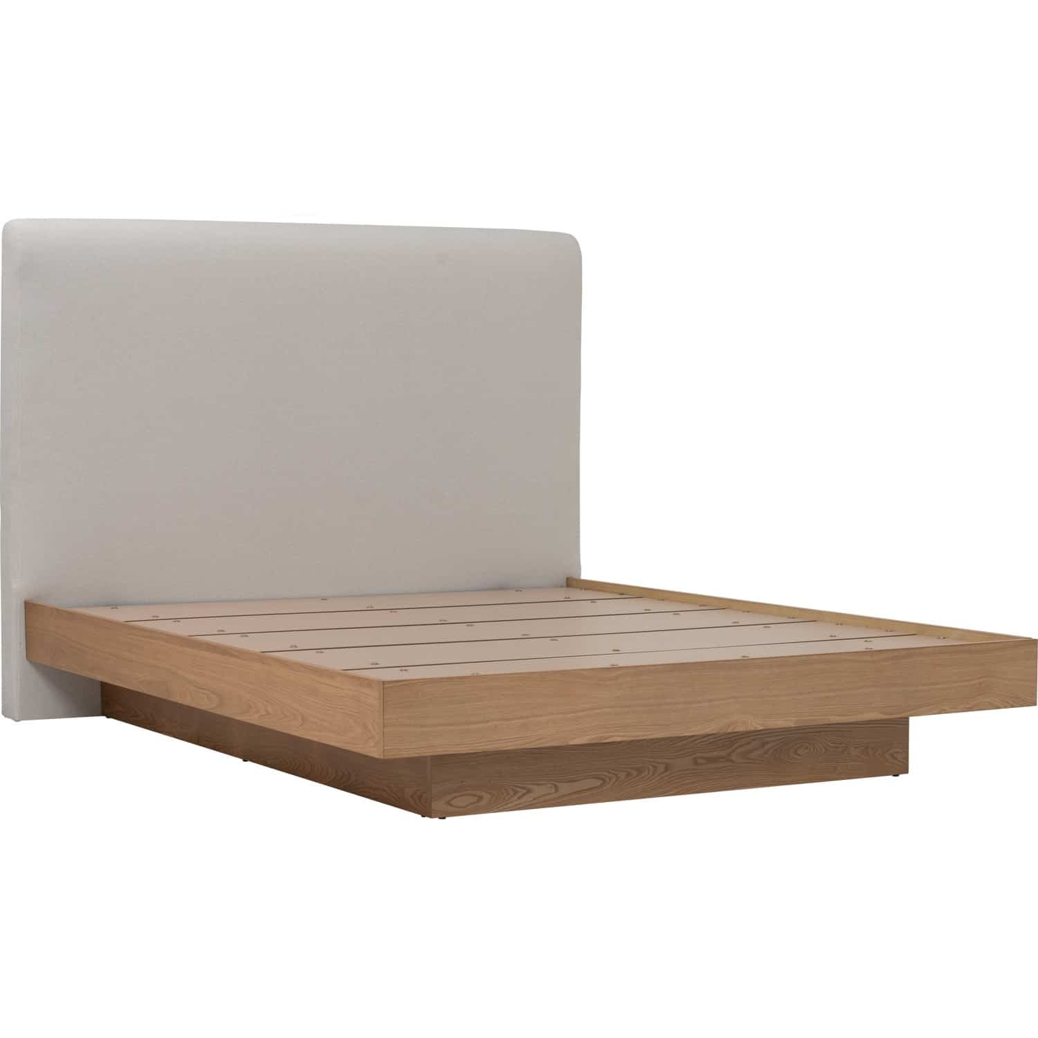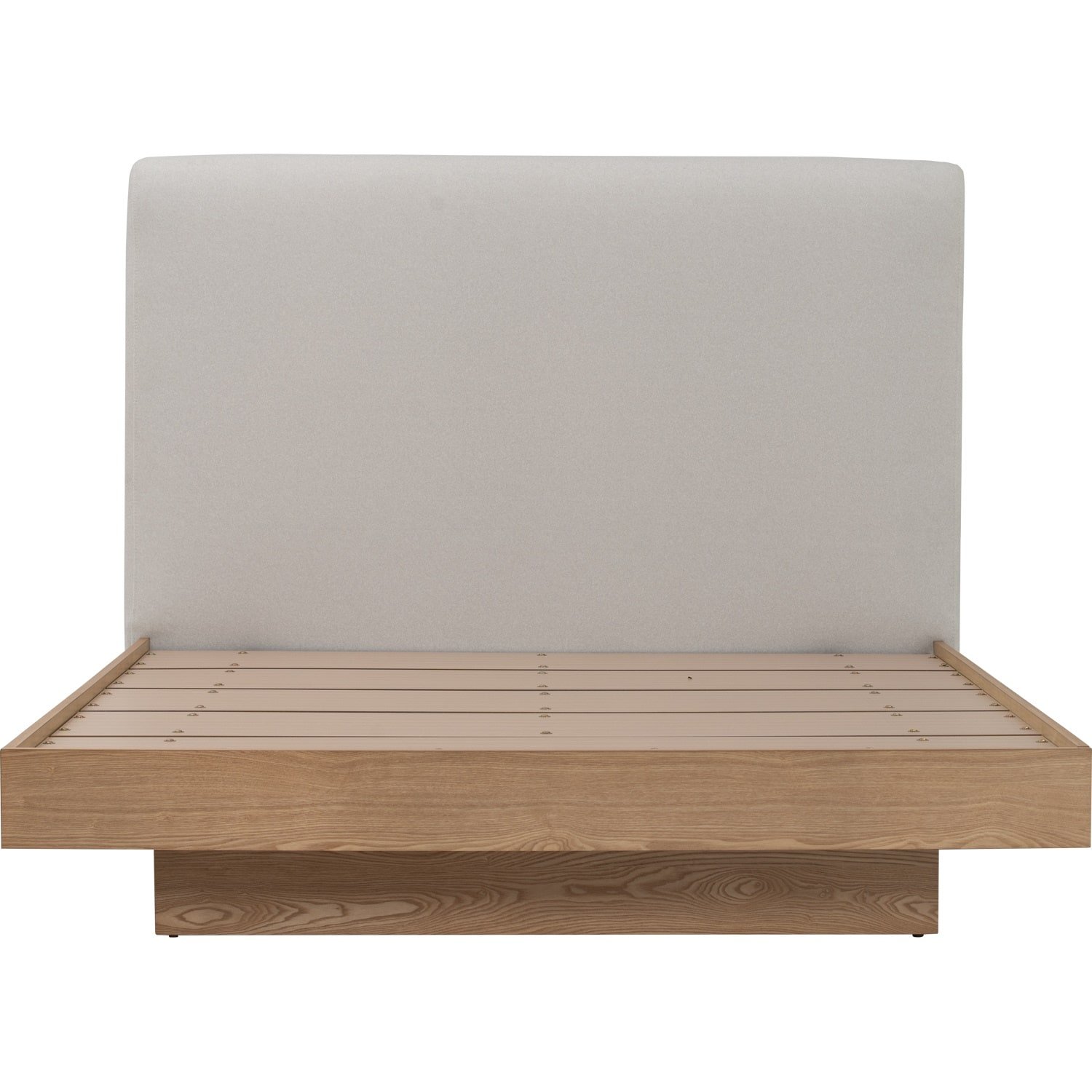 Yume Queen Bed with storage on Natural colour body, Grey Mist colour Mohair fabric (Pet friendly fabric) (Fit mattress: 1530x1930mm – Bed Panel)
