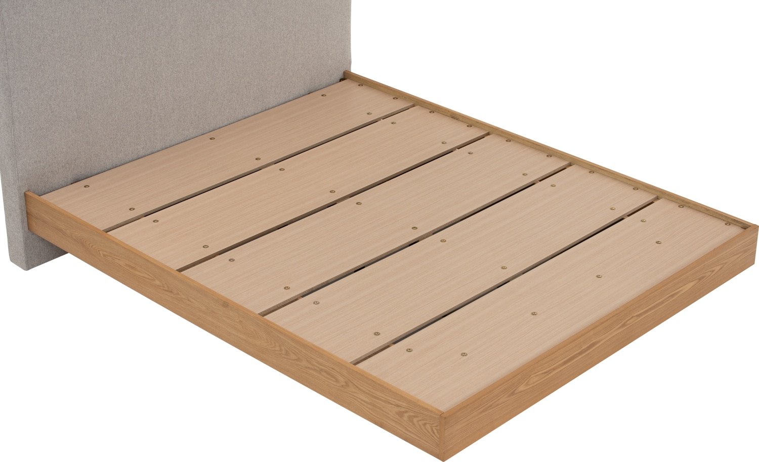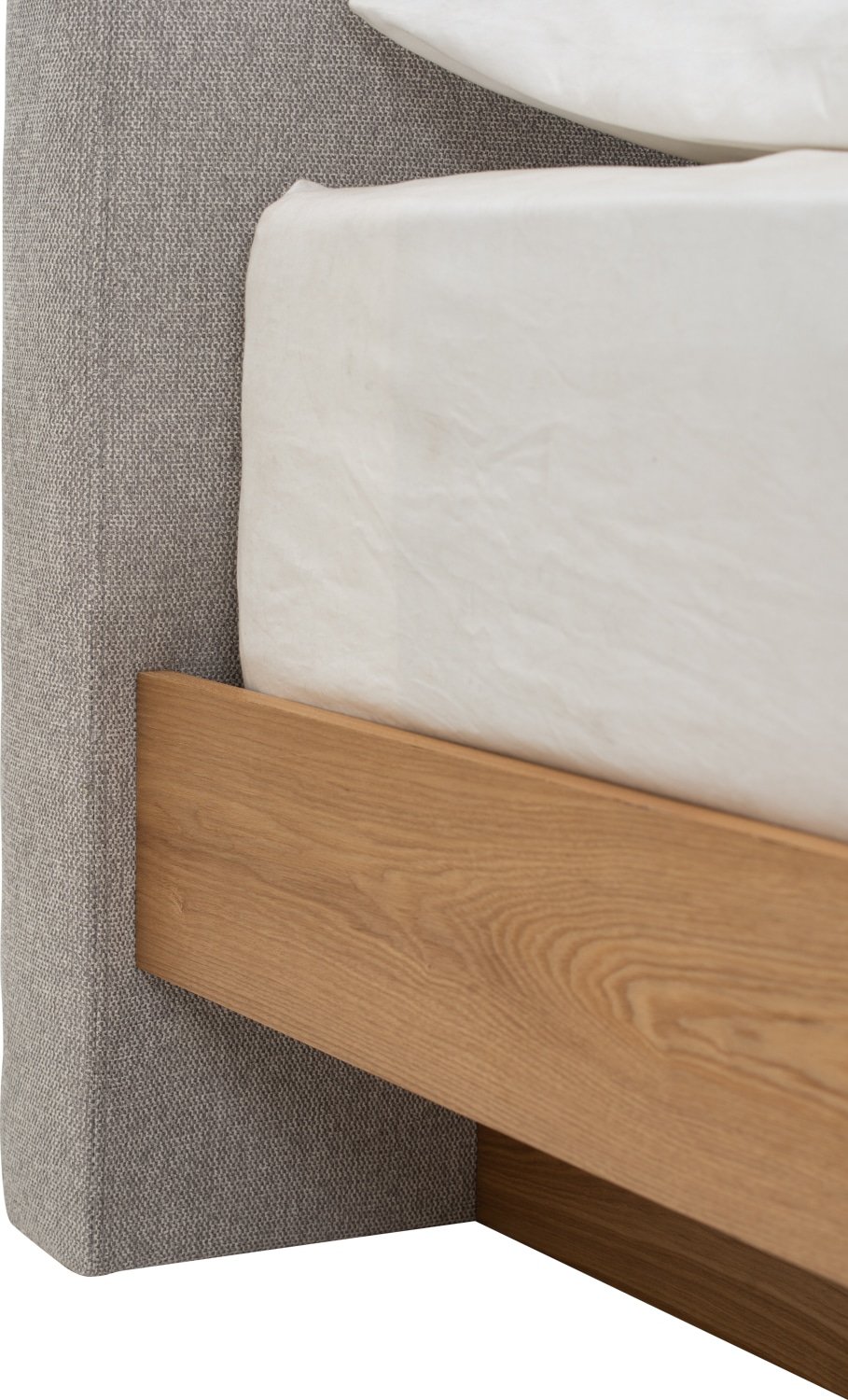 Yume Queen Bed in Natural colour body, Greymist colour Belfast fabric (Fit mattress: 1530x1930mm – Bed Panel)