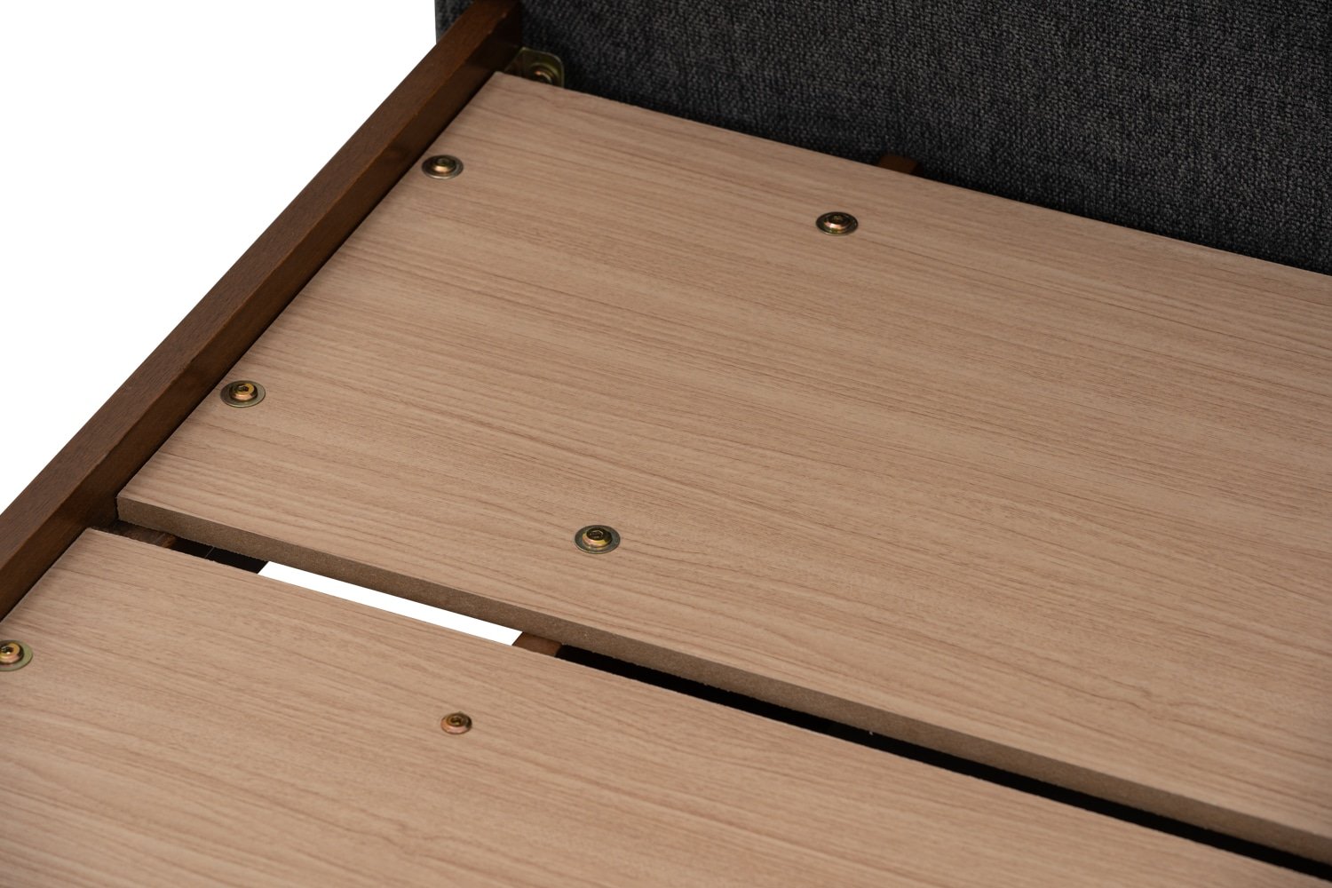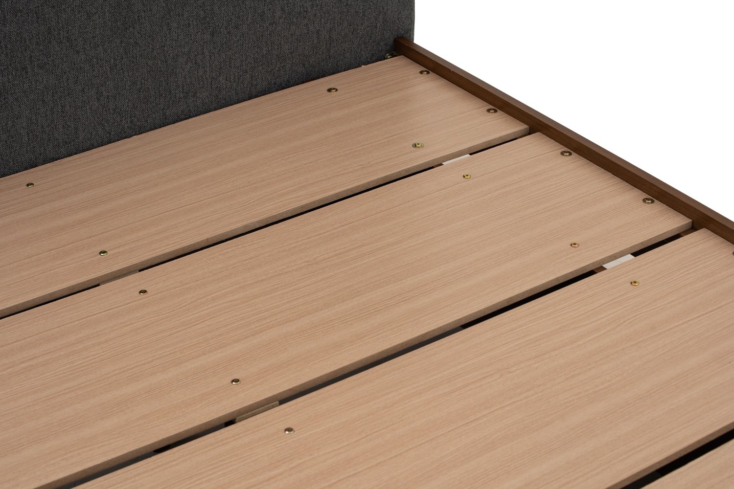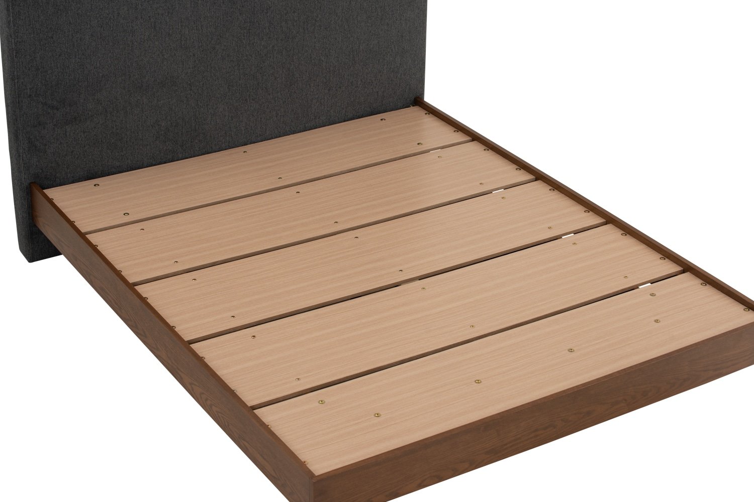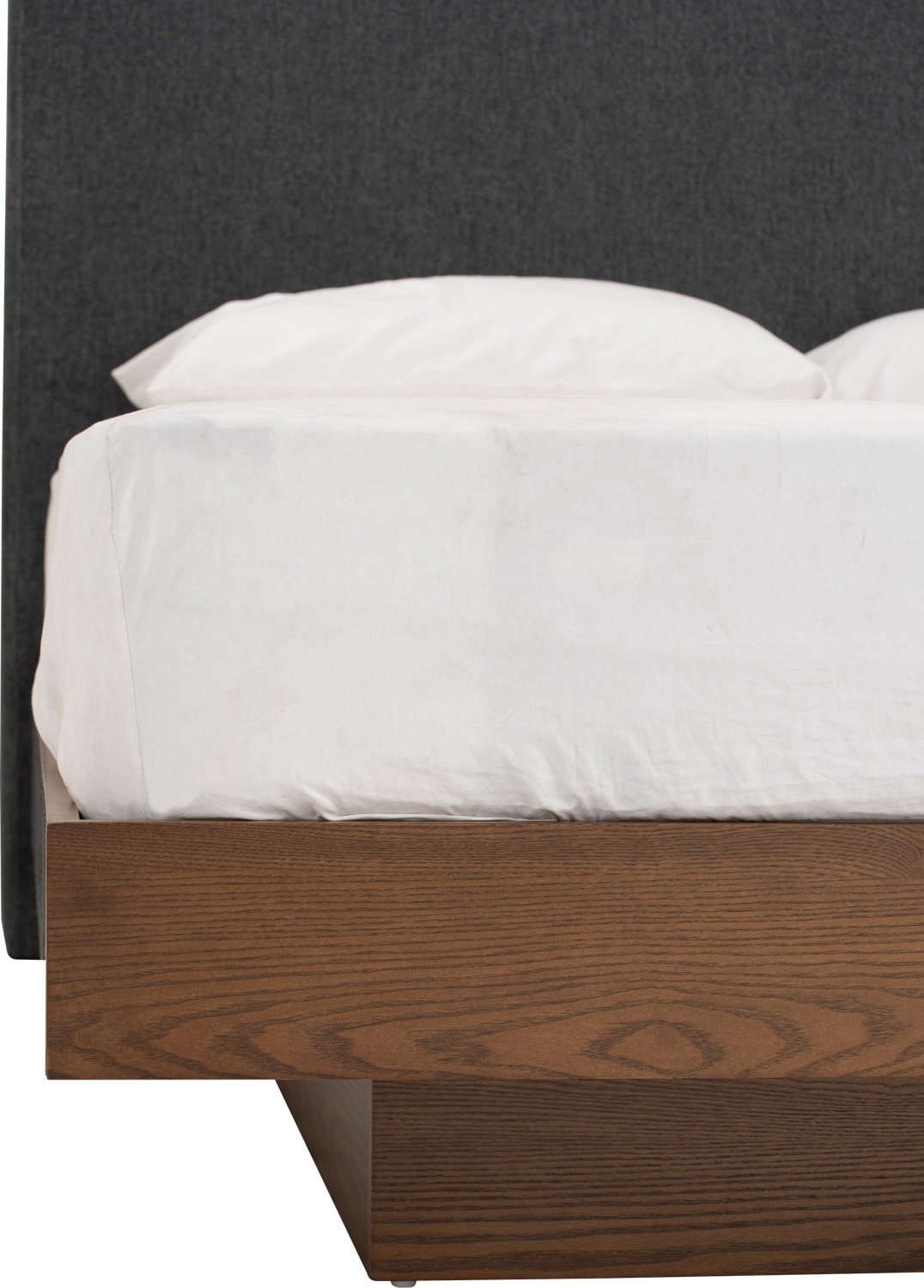 Yume Queen Bed in Cocoa colour body, Antharacite colour Belfast fabric (Fit mattress: 1530x1930mm – Bed Panel)